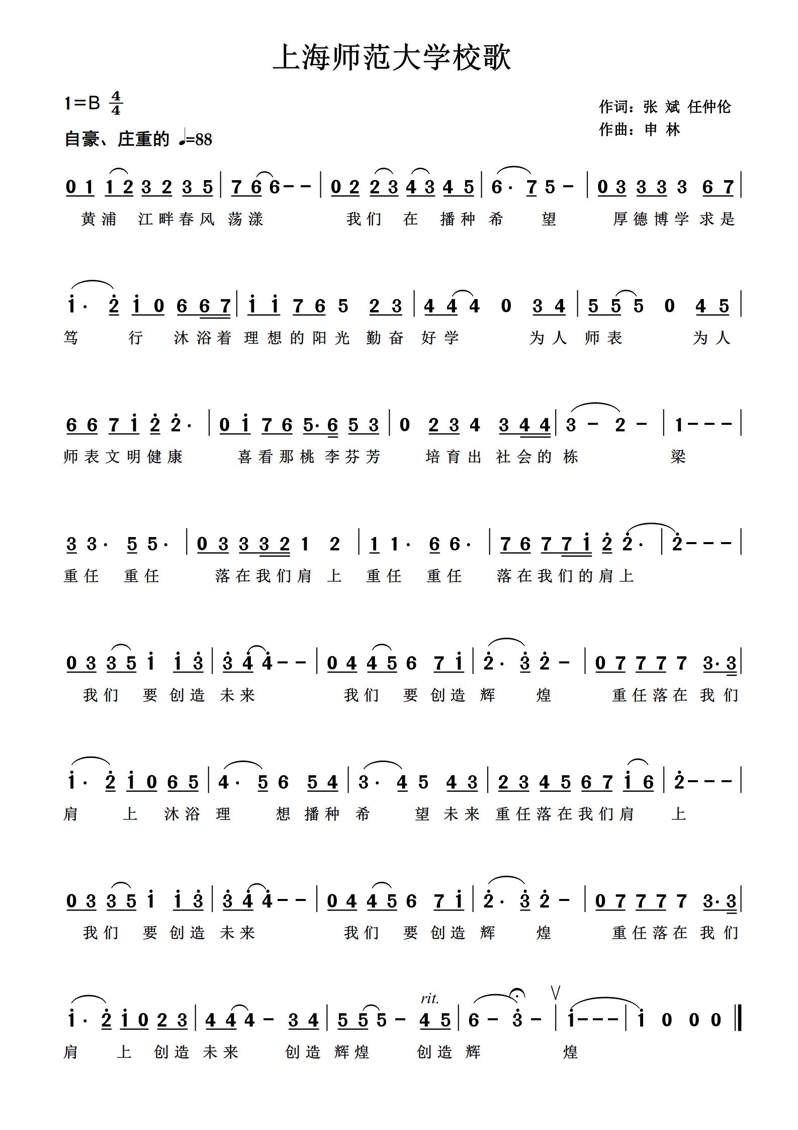 上海師范大學校歌(齊唱版)