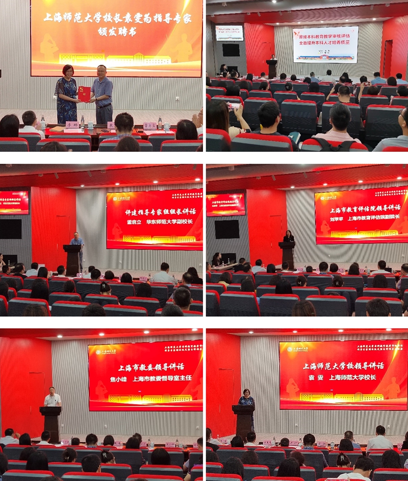 7月23日上午,學校在徐匯校區會議中心一號報告廳召開本科教育教學審核評估指導專家聘任儀式暨自評指導啟動會。上海市教委督導室主任焦小峰,上海市教育評估院副院長劉蘋蘋,上海市教委督導室一級主任科員唐金良,上海市教育評估院高教評估所項目主管方樂,我校評建指導專家組組長、華東師范大學副校長雷啟立,校長袁雯,副校長李曄出席會議,各二級學院分管學生工作副書記,各二級學院分管教學工作副院長、教務主管,學校本科教育教學審核評估評建工作組(教務處)全體成員參加會議。會議由黨委副書記、副校長朱惠軍主持。