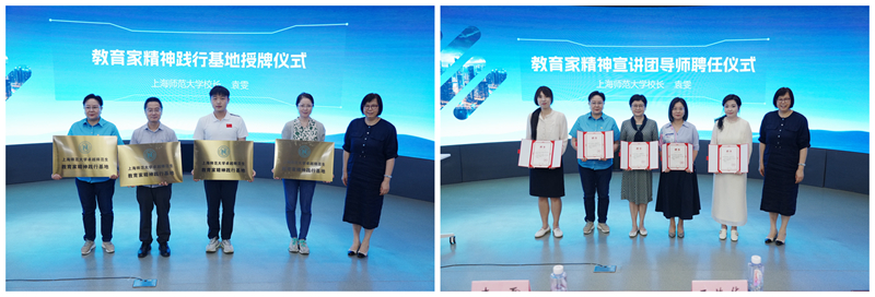 會上,我校副校長李曄分別與上海市教師教育學院院長王洋、重慶市科學技術研究院副院長韓鵬簽署了《教育家精神》課程共建協議、人工智能技術攻關的戰略合作協議;上海師范大學校長袁雯聘任了五位教育家精神宣講團導師并授牌了四家教育家精神踐行基地。