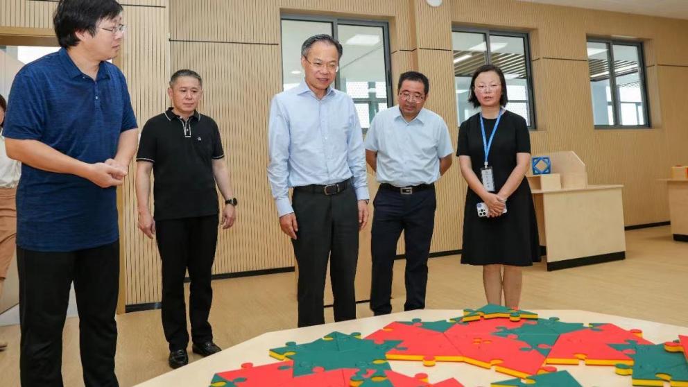 9月2日上午,上海市委常委、臨港新片區黨工委書記、管委會主任陳金山,臨港新片區黨工委委員、管委會專職副主任苗挺等領導來到上海師范大學附屬浦東臨港科創小學指導開學工作。上海師范大學附屬浦東臨港科創小學校長楊莉莉及上海師范大學教務處處長、基礎教育處處長王健向陳金山書記匯報了學校開辦工作。