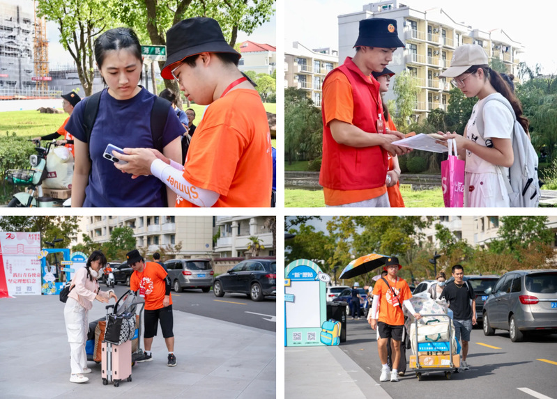 研究生院(研工部)和校團委招募的志愿者隊伍服務在南站接站、秩序維護、道口指引、咨詢答疑、行李助運等多個崗位上。志愿者們從清晨即開始全力投入迎新工作,將每一處細節都落實到位,讓新生感受到家的溫暖。黨員志愿者和各學院的導生作為中堅力量也忙碌在各自崗位上,踐行著新時代青年黨員的責任與擔當。看到通過學校微信公眾號推文中早已“熟悉”的輔導員老師,新生們瞬間感受到了見到老朋友的溫馨。
