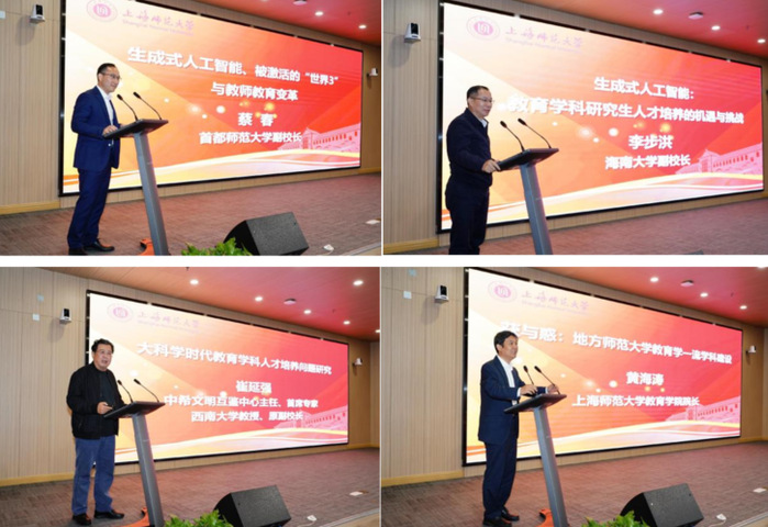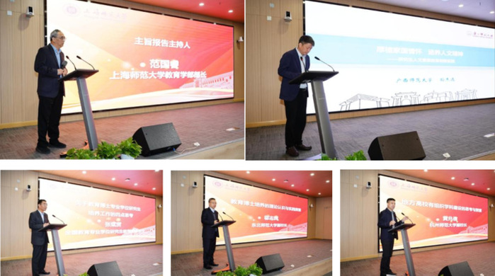 教育學部部長范國睿教授主持主旨報告。廣西師范大學校長孫杰遠教授、全國教育專業學位研究生教育指導委員會秘書長張斌賢教授、東北師范大學副校長鄔志輝教授、杭州師范大學副校長黃兆信教授、首都師范大學副校長蔡春教授、海南大學副校長李步洪教授、西南大學原副校長崔延強教授及上海師范大學教育學院院長黃海濤教授分別圍繞教育學科建設和教育學科研究生人才培養等議題進行了深入闡述和探討。