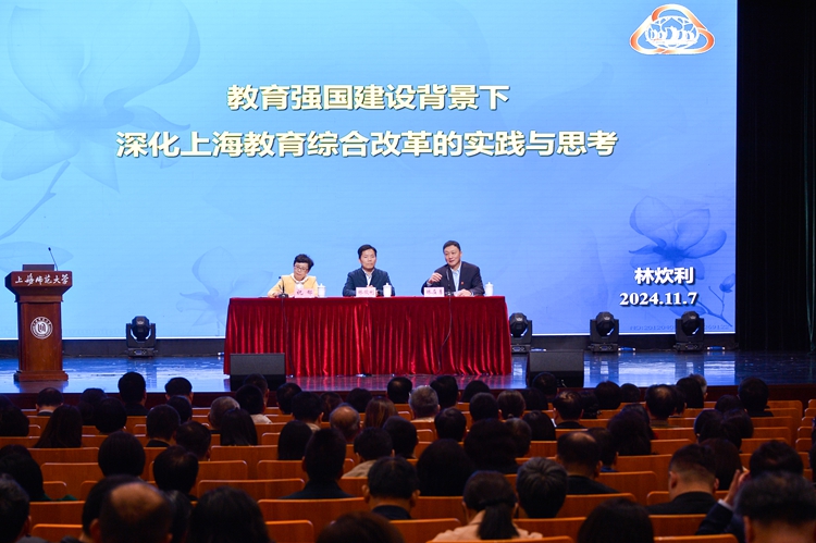為深入學習貫徹黨的二十屆三中全會精神和全國教育大會精神,結合學習貫徹教育強國建設規劃綱要,深刻領會教育強國建設、深化教育綜合改革的重要意義。11月7日下午,上海師范大學、上海教育科學院在徐匯校區音樂廳舉行黨委理論學習中心組聯組學習(擴大)會,校領導班子成員、全體副處級以上干部,上海市教育科學研究院領導班子成員、全體副處級以上干部參加學習。市委教育工作領導小組秘書處處長、市教衛工作黨委研究室主任兼市教委綜改辦主任林炊利作專題報告。校黨委書記林在勇主持學習會。