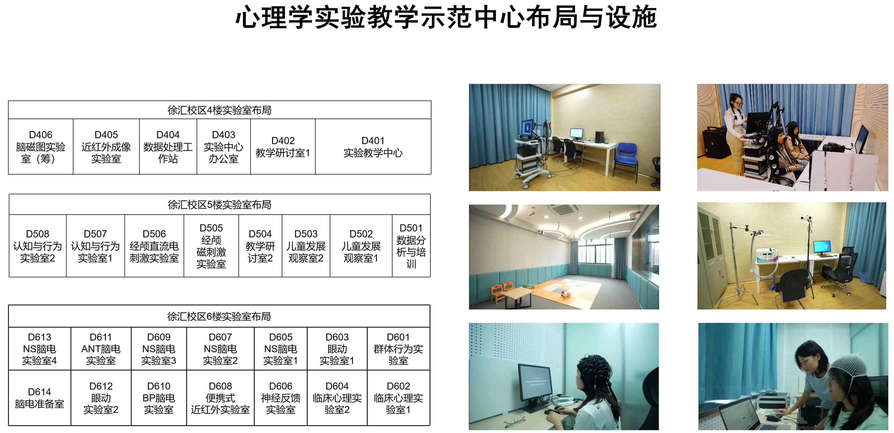 心理學(xué)實(shí)驗(yàn)教學(xué)示范中心(三星級):該中心定位于面向心理學(xué)專業(yè)、交叉學(xué)科專業(yè)和全校師范生,開展心理學(xué)實(shí)驗(yàn)、研究方法教學(xué)、應(yīng)用實(shí)踐能力培養(yǎng)的高端支撐性平臺(tái),有完備的本碩博人才培養(yǎng)體系。致力于推進(jìn)實(shí)驗(yàn)教學(xué)和產(chǎn)學(xué)研協(xié)同創(chuàng)新,促進(jìn)心理學(xué)與教育學(xué)、腦科學(xué)、計(jì)算機(jī)科學(xué)等多學(xué)科交叉融合,全面提升學(xué)生育德、育心、育教能力,培養(yǎng)心理學(xué)拔尖創(chuàng)新性人才和交叉學(xué)科人才,為高素質(zhì)教師隊(duì)伍和應(yīng)用人才培養(yǎng)做出卓越貢獻(xiàn)。