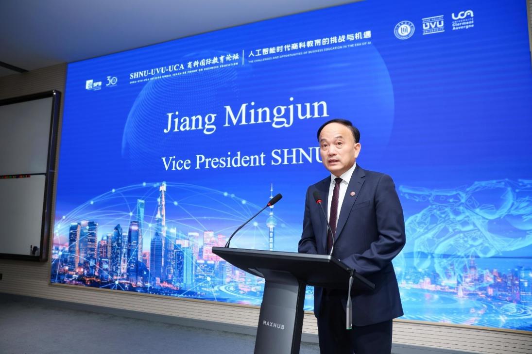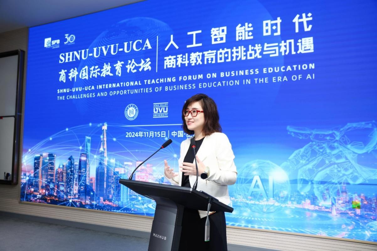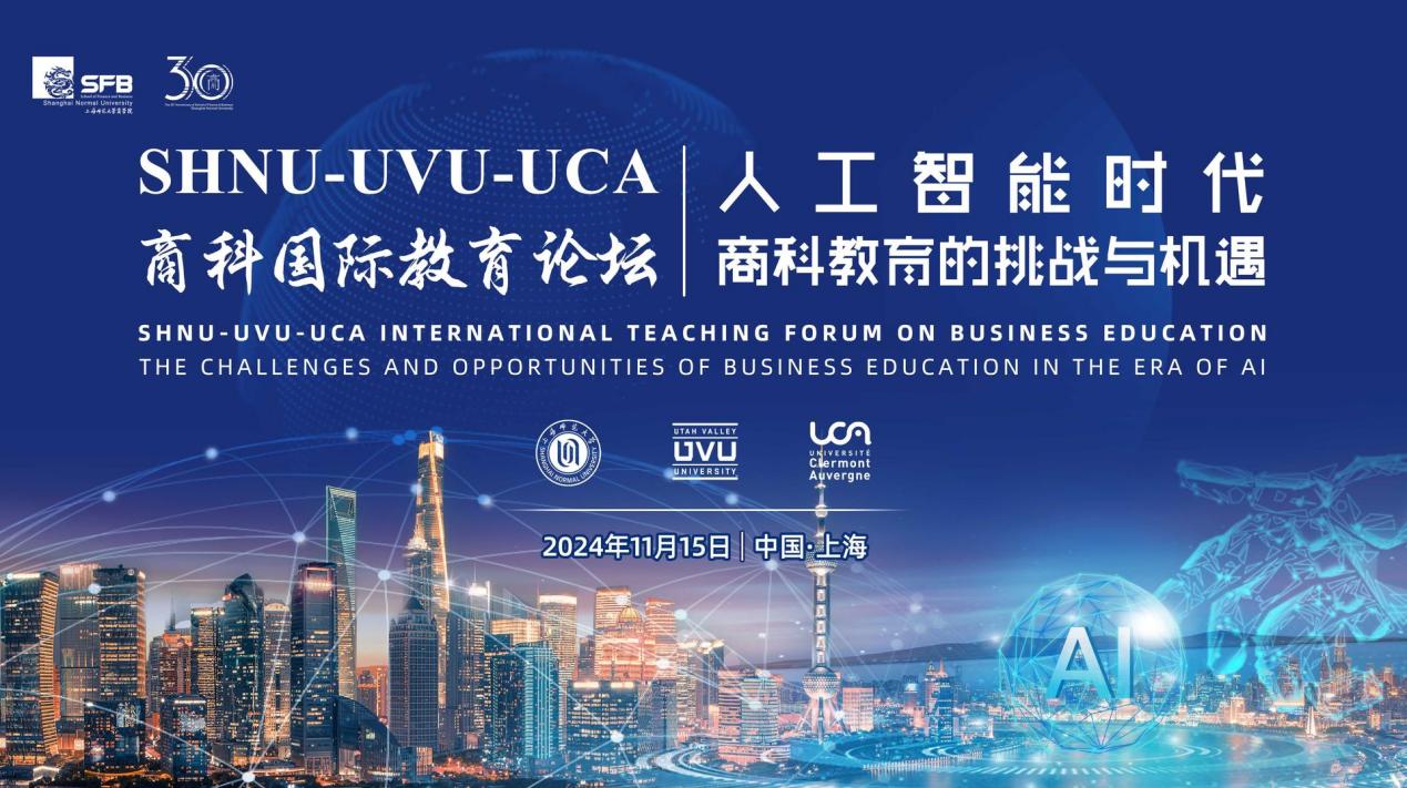 11月15日,SHNU-UVU-UCA商科國(guó)際教育論壇在我校舉辦。本次論壇的主題是“人工智能時(shí)代商科教育的挑戰(zhàn)與機(jī)遇”。本次論壇聚焦于人工智能時(shí)代商科教育的挑戰(zhàn)與機(jī)遇,旨在探討人工智能對(duì)商業(yè)教育的變革性影響,以及如何培養(yǎng)具備人工智能素養(yǎng)和創(chuàng)新能力的復(fù)合型人才。