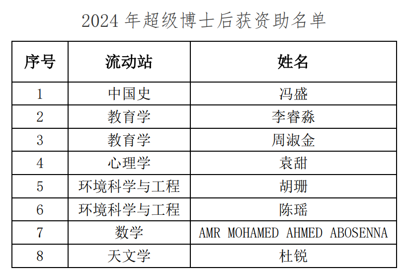 近日,上海市人力資源和社會保障局公布了2024年度上海市“超級博士后”激勵計劃資助人員名單,我校有8位博士后獲得本年度資助。
