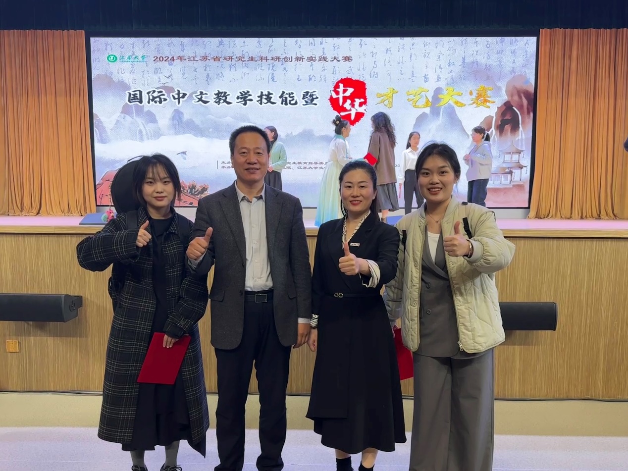 近日,由江蘇省文學類研究生教育指導委員會主辦的2024年江蘇省研究生科技創新實踐大賽——國際中文教學暨中華才藝大賽在江蘇大學舉行。我校對外漢語學院選派2024級國際中文教育專業碩士生參賽,徐偉莉、林楠在教學技能大賽中分別獲得一等獎和二等獎,張悅琳在中華才藝大賽中獲得三等獎。
