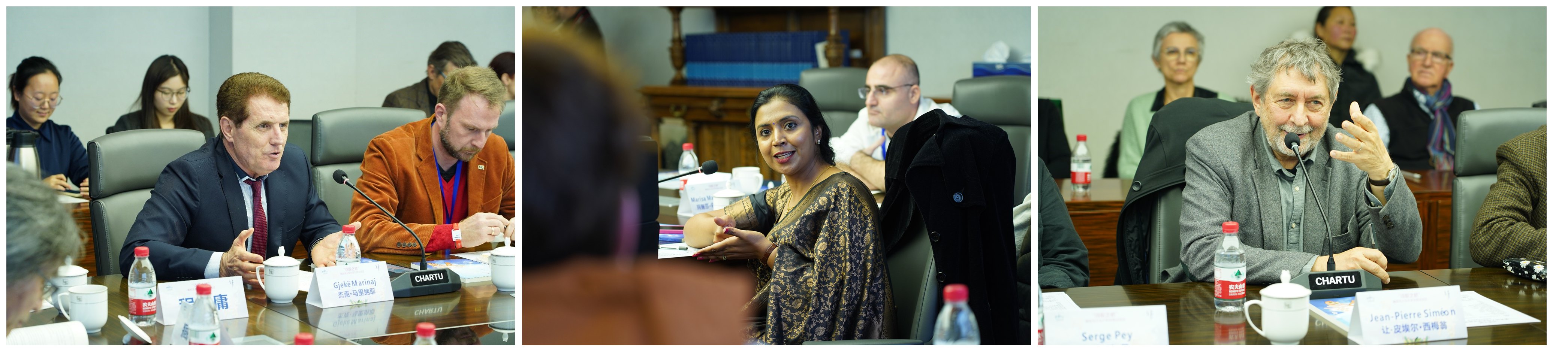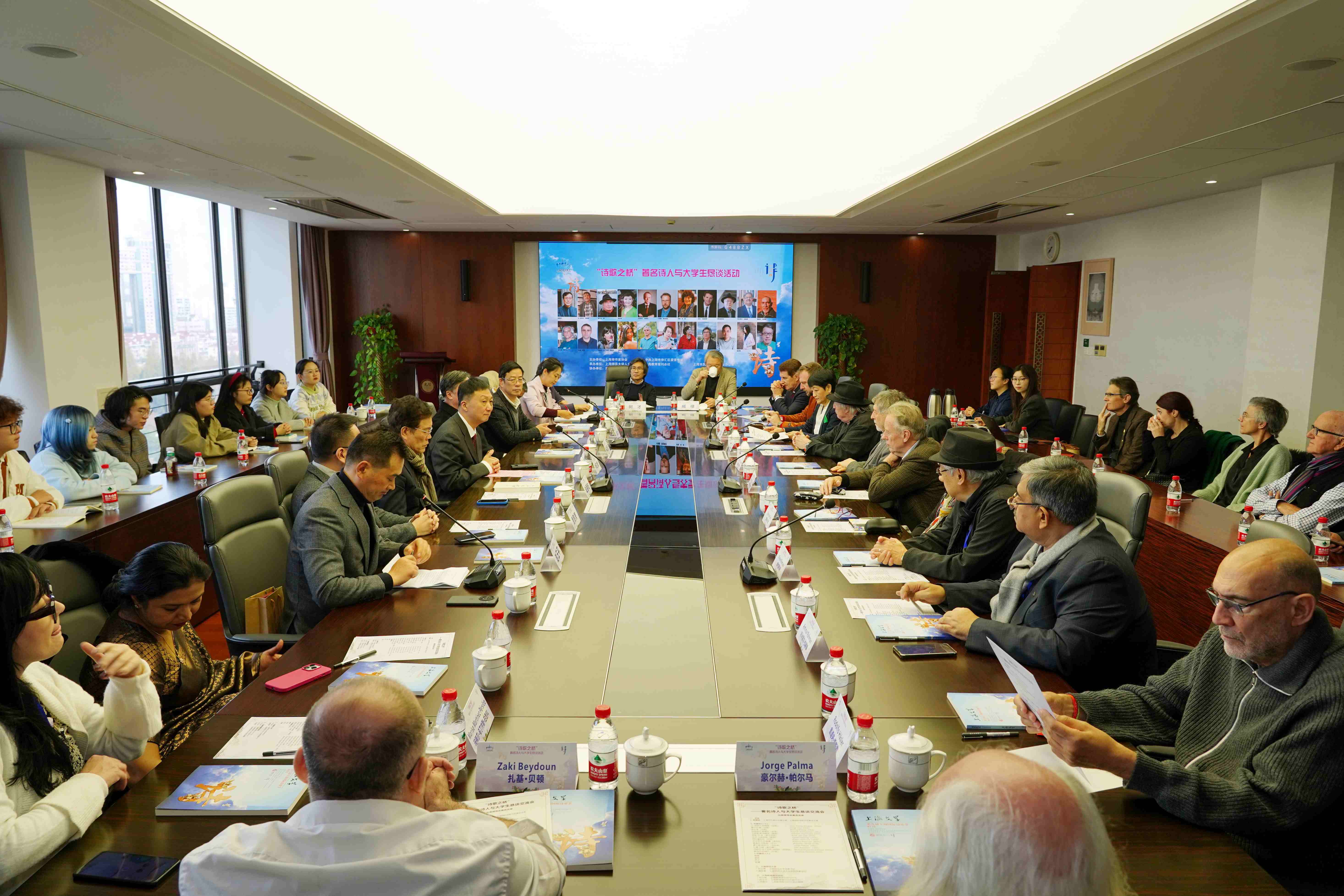 12月4日下午,2024第九屆上海國際詩歌節即將落幕之際,來自中國、法國、美國、德國、阿根廷、黎巴嫩和印度等十幾個國家的20多位中外詩人,走進我校光啟國際學者中心,與熱愛詩歌的大學生們進行了一場“詩歌之橋”詩人與大學生懇談交流會活動。上海市作家協會副主席、上海國際詩歌節藝委會主席趙麗宏、上海師范大學黨委書記林在勇、人文學院黨委書記潘黎勇、上海教育報刊總社社長仲立新、上海教育報刊總社副社長趙玉平、上海教育報刊總社副總編輯徐建華以及人文學院、海棠詩社師生們參與此次活動。在熱烈友好的交流互動中,青年大學生詩人們領略到了不同國家詩人的文化觀念和詩歌思維,在創作中遇到的一些難題也得到具體指導。