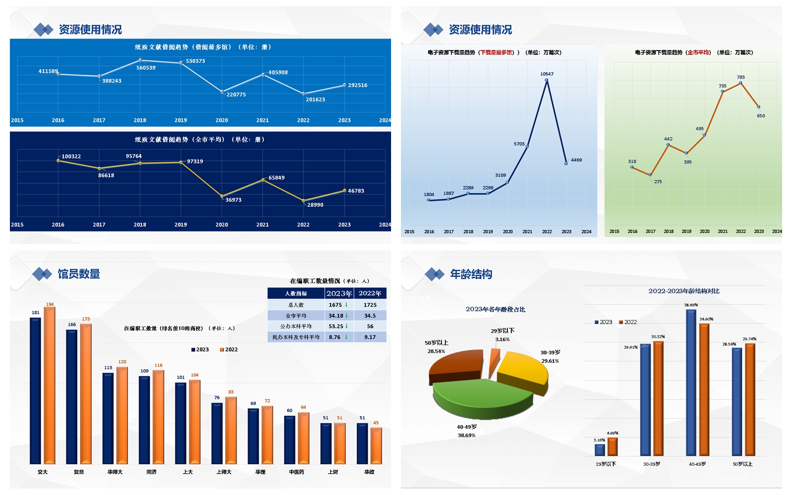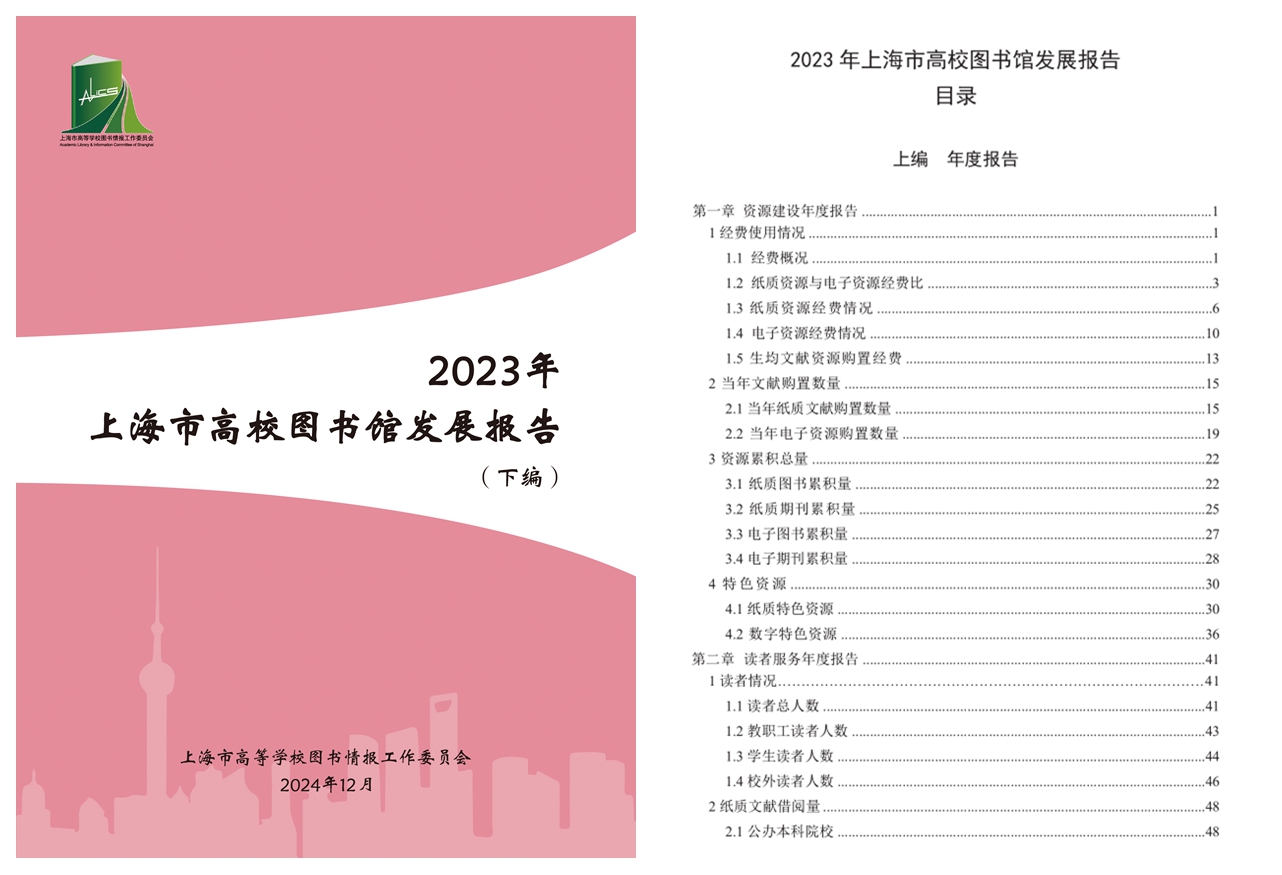 本次發布的“發展報告”主要對2023年全年數據進行統計,分上下兩編。上編為年度報告,從圖書館資源建設、讀者服務、人力資源、硬件設施、學術研究五個部分,對上海市高校圖書館相關情況進行描述和分析;下編為基礎數據,對各部分統計數據進行客觀呈現。“發展報告”旨在通過數據反映上海市高校圖書館發展現狀以及行業發展最新動態,幫助全市各高校圖書館制定合理的發展策略,輔助主管部門進行決策參考。