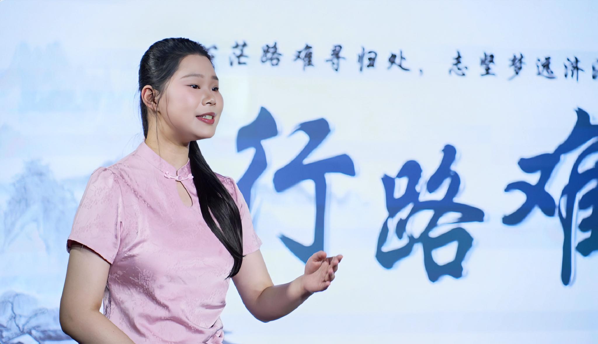 《行路難(其一)》是壯志未酬的悲歌,亦是堅韌不拔的頌曲。參賽選手王正宜以情釋文,引領著觀眾走進李白的內心世界,感受他從歡樂到郁結,從壯志凌云到彷徨掙扎,再到堅定信念,以“長風破浪”之志,誓要“濟滄海”的心路歷程,見證這位謫仙人“心茫路難尋歸處,志堅夢遠濟滄海”的執著與不屈,并從中汲取力量,勇往直前。