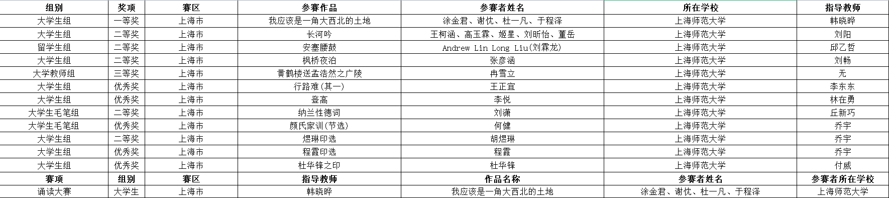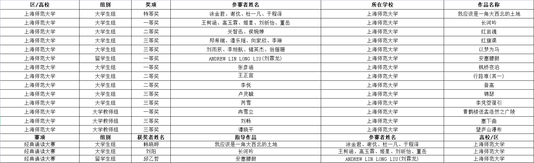 第六屆中華經典誦寫講大賽上海賽區獲獎名單