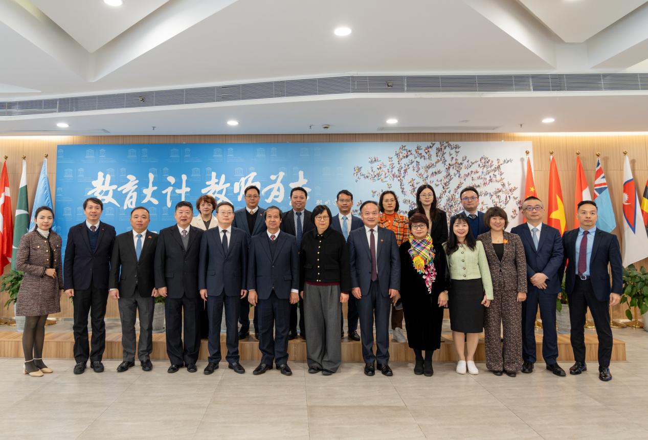 12月12日上午,越南教育代表團在阮金山部長的帶領下訪問了聯合國教科文組織教師教育中心(以下簡稱“聯教中心”),并與聯教中心就中越教師發展及合作事宜進行了深入討論。越方代表團成員由教育與培訓部的主要官員、河內國家大學附屬社會與人文科學大學校長及合作發展專員、越南駐華大使館教育處負責人以及越南駐上海總領事館總領事和領事等11人組成。上海市教育委員會副主任劉力,上海師范大學校長袁雯、副校長蔣明軍,聯合國教科文組織教師教育中心主任張民選等相關領導參加會見與討論。上海市教育委員會國際交流處四級調研員劉江園及上海師范大學國際交流處處長肖勝雄等人陪同會見。上海師范大學國際教師教育中心副主任王潔教授主持了活動。
