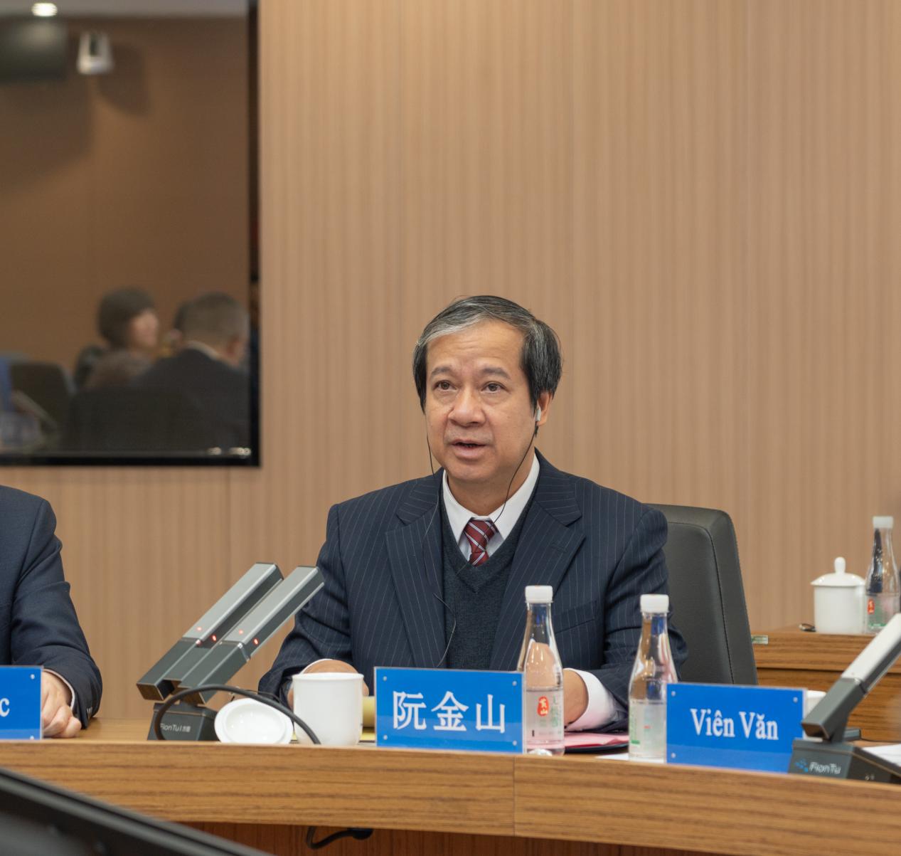 劉力首先對阮金山部長及其代表團的到來表示最熱烈的歡迎。他表示,近年來中越教育合作持續深化,并取得了一系列豐碩成果。中越兩國政府簽署的《中華人民共和國政府與越南社會主義共和國政府教育合作協定》為兩國教育合作提供了堅實的政策支持。劉力衷心希望通過此次訪問和交流活動,中越兩國能共同探討中越教育未來發展之路。