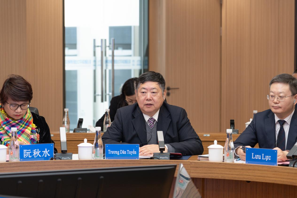 之后,袁雯、張民選分別代表學校和聯教中心,對代表團的到來表示熱烈歡迎。兩人均強調,2025年是中越兩國建交75周年的重要時刻,他們期待能與越方達成更多共識,進一步推動雙方在教育領域的合作,攜手促進兩國教育事業的共同發展。
