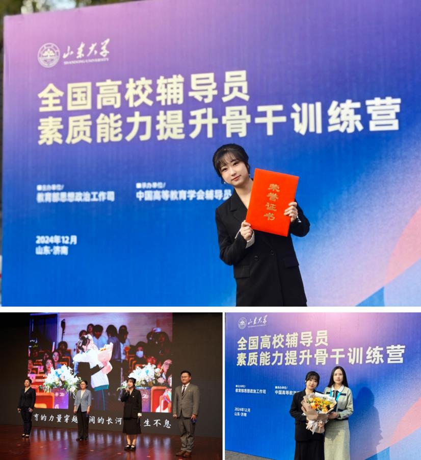 12月9日至11日,2024年全國高校輔導員素質能力提升骨干訓練營在山東大學舉行。我校馬克思主義學院輔導員白瑤獲評“優秀風采獎”,并作為6名參訓輔導員代表在結營儀式上分享心得與收獲,充分展現了我校輔導員隊伍過硬的綜合素質和專業水平,以及昂揚向上、奮發有為的精神風貌。