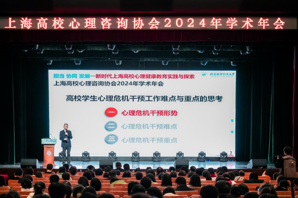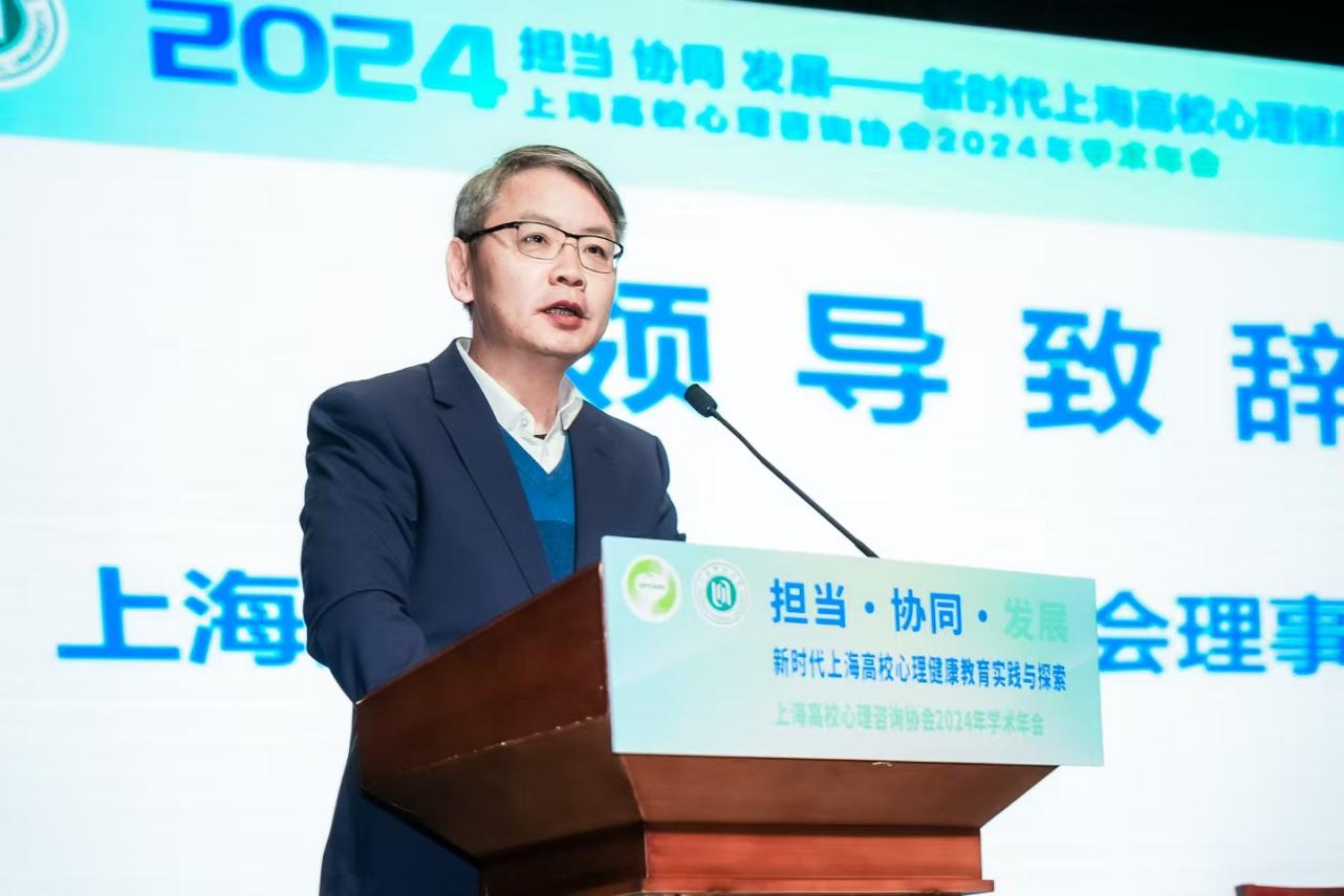 為認真學習貫徹教育部等17部門《全面加強和改進新時代學生心理健康工作專項行動計劃(2023—2025年)》和上海市《全面加強和改進新時代學生心理健康工作專項行動實施方案》等文件精神,12月27日,上海高校心理咨詢協會(以下簡稱“協會”)在上海師范大學召開2024年學術年會。年會以“擔當·協同·發展——新時代上海高校心理健康教育實踐與探索”為主題,圍繞進一步健全和完善高校學生心理健康工作體系展開研討交流,旨在為全市高校心理健康工作人員提供交流互鑒的平臺。上海交通大學黨委書記、上海學校心理健康教育專家指導委員會主任委員楊振斌教授,中國心理衛生協會大學生心理咨詢專業委員會主任委員、北京航空航天大學積極心理體驗中心主任馬喜亭教授,上海師范大學校長袁雯教授,上海高校心理咨詢協會理事長、上海對外經貿大學黨委書記祁明教授,上海師范大學黨委副書記、副校長朱惠軍等出席年會。年會開幕式由協會常務副理事長劉明波主持。來自全市各高校近200位心理健康教育工作者到場參會。