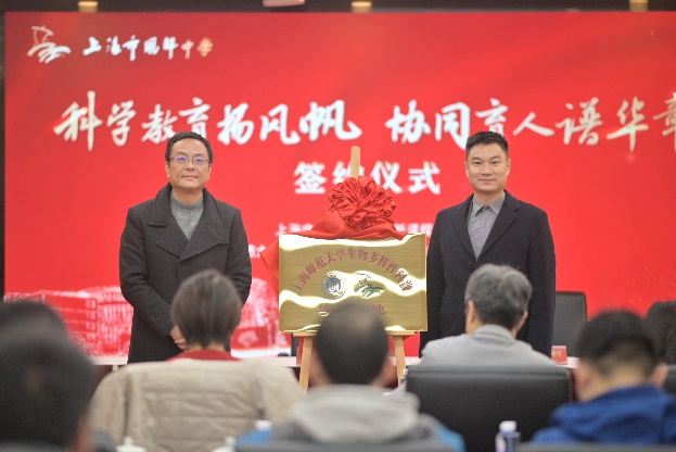 在與會領導和師生代表見證下,“無人機創新課程研究與推廣中心”“上海師范大學大中小學科創課程思政一體化實踐基地”和“上海師范大學生物多樣性科普實踐基地”三個合作基地揭牌并正式落地風華中學,各方共同簽署了合作協議。這標志著合作邁入了實質性階段,也為上海市風華中學創新教育提供了新的平臺。
