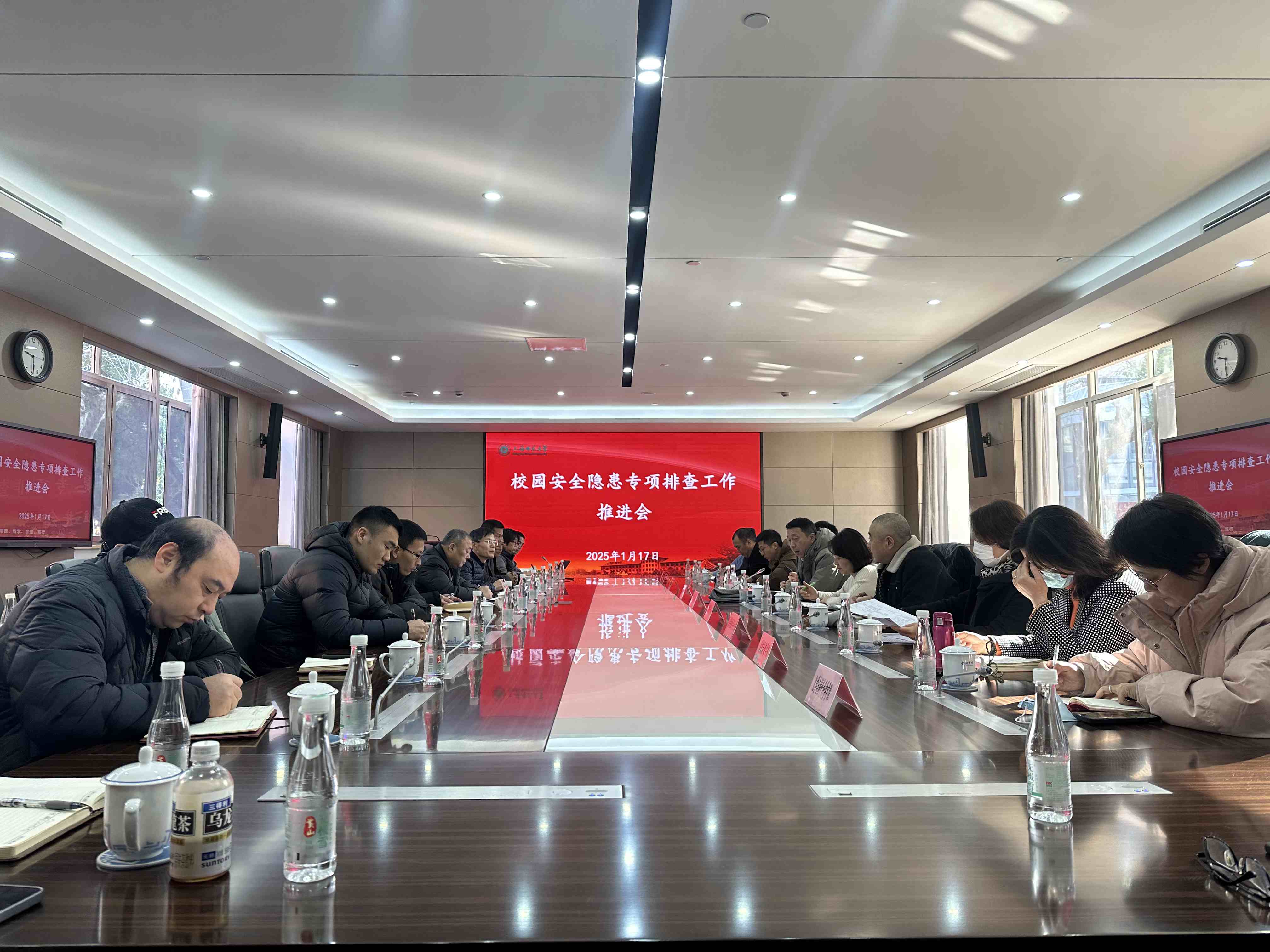 排查工作期間,相關(guān)校領(lǐng)導(dǎo)還組織召開排查工作推進(jìn)會(huì)和匯報(bào)會(huì)。認(rèn)真聽取各部門的相關(guān)工作匯報(bào),進(jìn)一步要求相關(guān)職能部門、學(xué)院和單位同志充分認(rèn)識(shí)到校園安全工作的重要性,切實(shí)加強(qiáng)組織領(lǐng)導(dǎo),將校園安全工作落到實(shí)處。