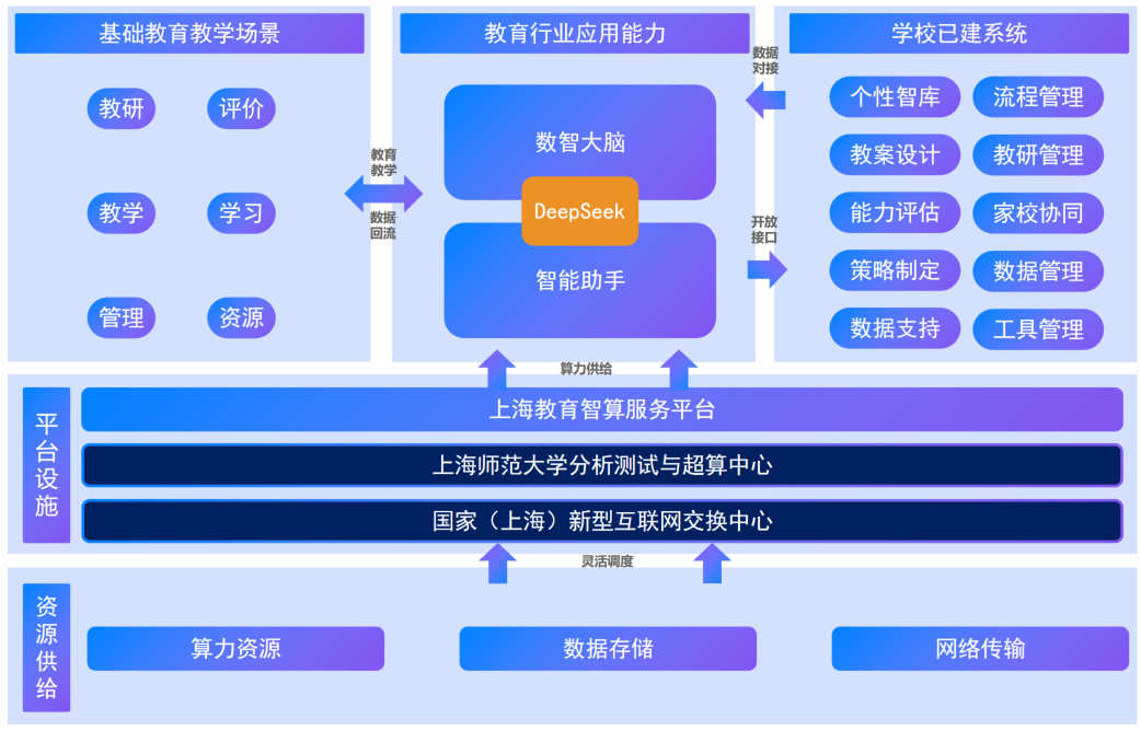 新學期伊始,上海教育智算服務平臺(以下簡稱“平臺”)全面接入DeepSeek大模型。平臺借助DeepSeek強大的學習和推理能力,結合“數智大腦”對教育數據價值的深度挖掘,以及“智能助手”的個性化智庫和教育智能體功能,在學習、教學、備課、管理等核心教育實踐創新變革方面,展示出巨大的潛力。