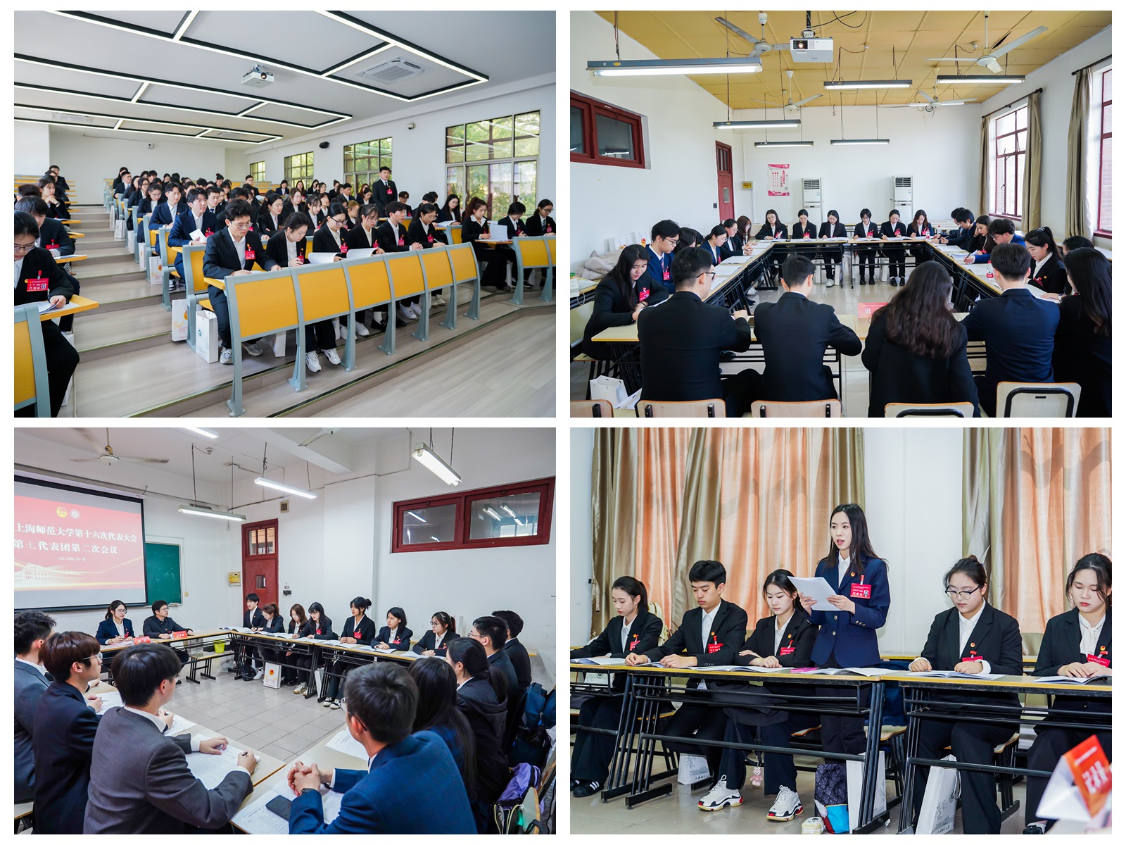 分團討論階段,全體代表審議共青團上海師范大學第十五屆委員會工作報告、討論大會選舉辦法、醞釀第十六屆團委委員候選人建議名單等。