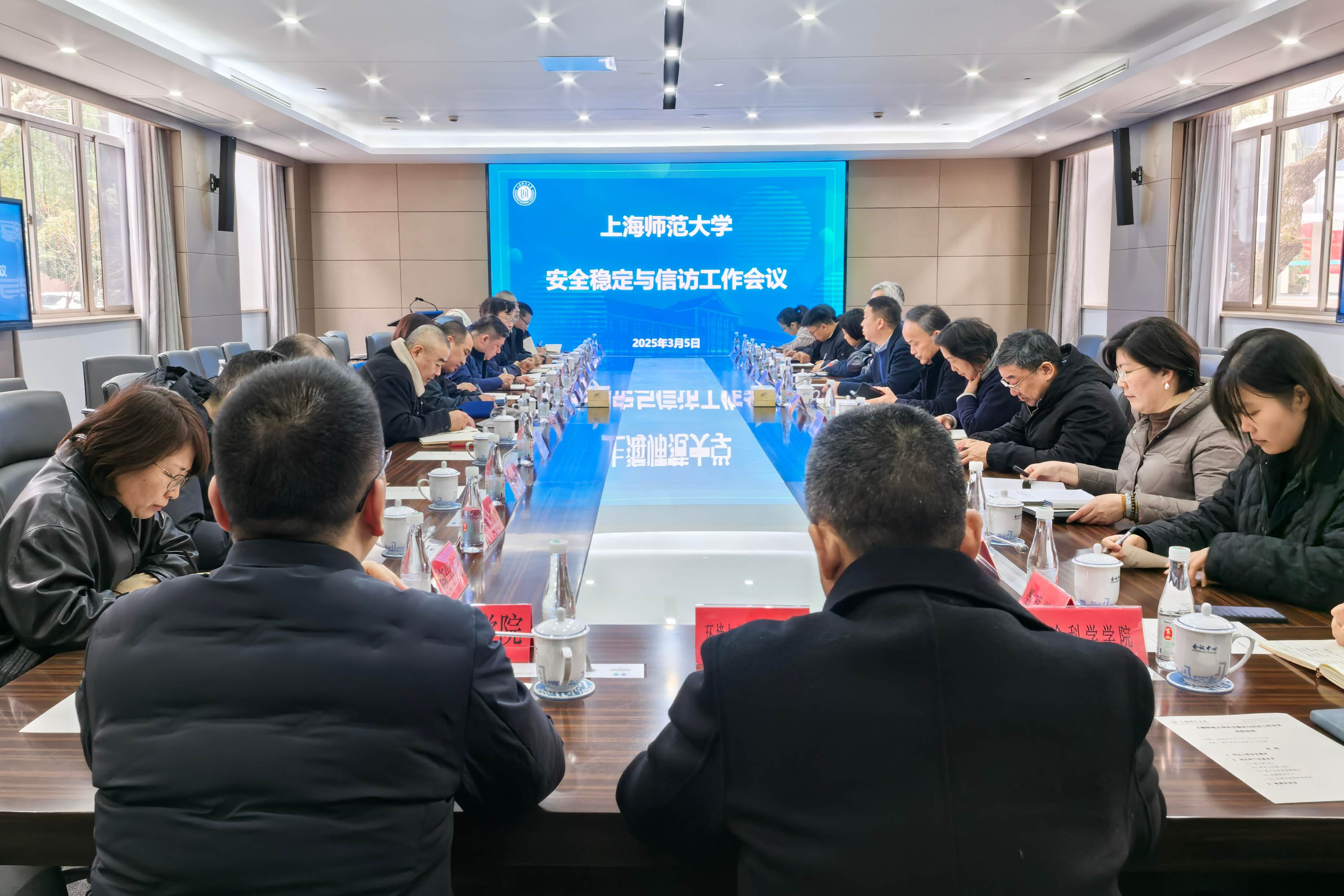 3月5日上午,學校2025年度安全穩定與信訪工作會議在徐匯校區外賓樓101會議室召開,貫徹落實習近平總書記關于安全穩定、安全生產的重要指示批示精神,傳達上級有關會議精神,分析當前校園安全和信訪穩定工作形勢,對下階段重點工作再部署再推進。校黨委副書記、副校長朱惠軍,副校長蔣明軍,總會計師曹光明,相關職能部門、學院負責人出席會議。會議由朱惠軍主持。
