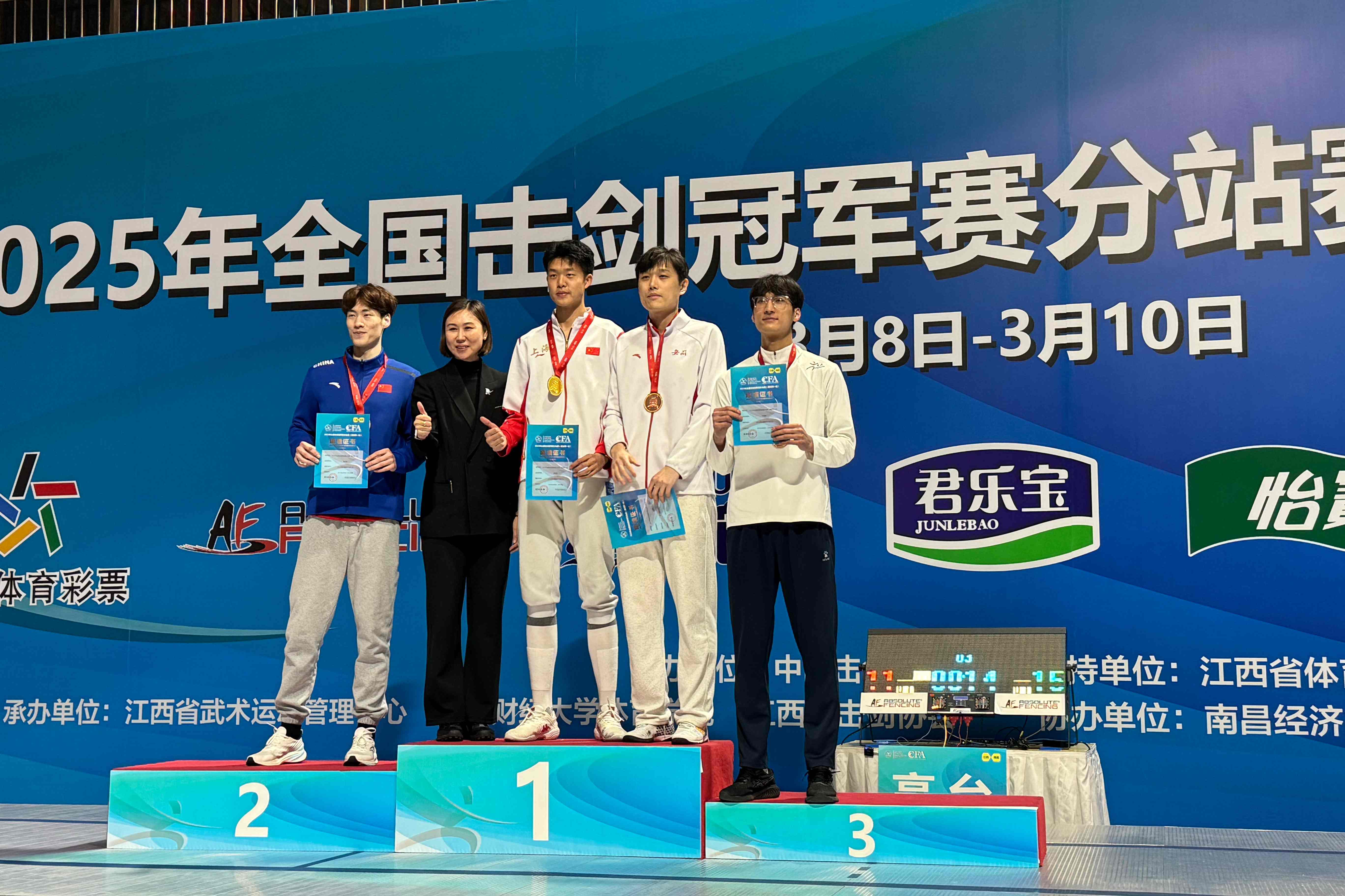 3月10日,全國擊劍冠軍賽分站賽(重劍第一站)在江西省南昌市江西財經大學落幕。在這場匯聚了國內頂尖擊劍選手的競技盛宴中,我校首屆運動訓練專業本科生黃宇軒憑借卓越的表現,在男子重劍個人決賽中脫穎而出,摘得金牌。