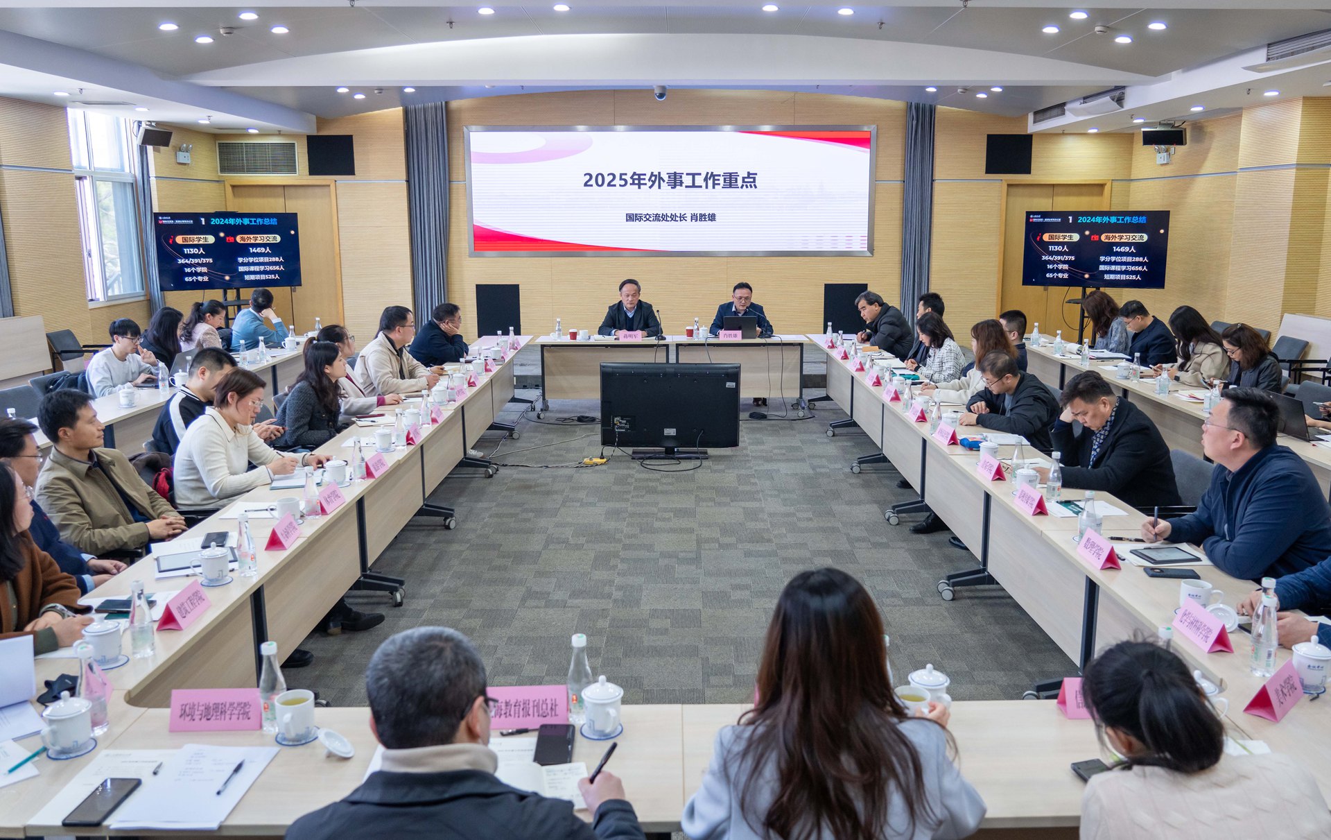 國際交流處處長肖勝雄在會上總結了2024年學校外事工作,并介紹了2025年的工作重點。