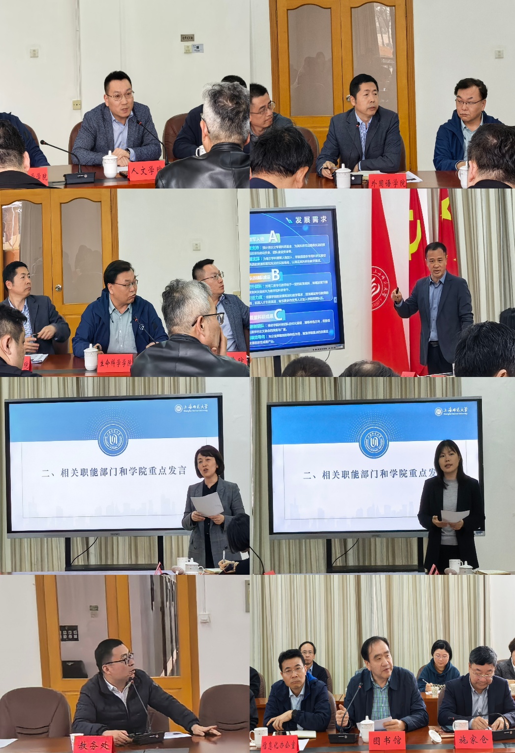 人文學院黨委書記潘黎勇、外國語學院院長高航、生命科學學院院長戴紹軍、信息與機電工程學院主持(副)院長潘建國、學生工作部(處)長朱政、校團委書記黃雨艷、教務處副處長、招生辦公室主任李釗輝以及圖書館館長賈鐵飛作為學院和職能部門代表作交流發言。