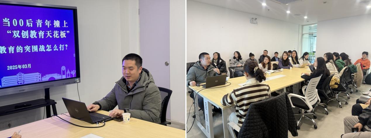 創新創業學院特邀上海市人社局創業指導專家、海星紀元教學培訓部部長王仕杰開展《當00后青年撞上‘雙創教育天花板’:輔導員雙創教育的突圍戰怎么打》專題分享。王仕杰老師緊密結合人工智能和新能源等行業趨勢、時代和青年熱點議題展開深入研討。王仕杰從大量實例中梳理出最具影響力的創新類賽事差異和評審要求。交流提問環節,他針對輔導員日常工作痛點,通過對真實案例的深度剖析給輔導員提供全新思路,有效提升了我校輔導員在雙創教育中的指導能力,為學生雙創實踐能力的發展提升打牢基礎。