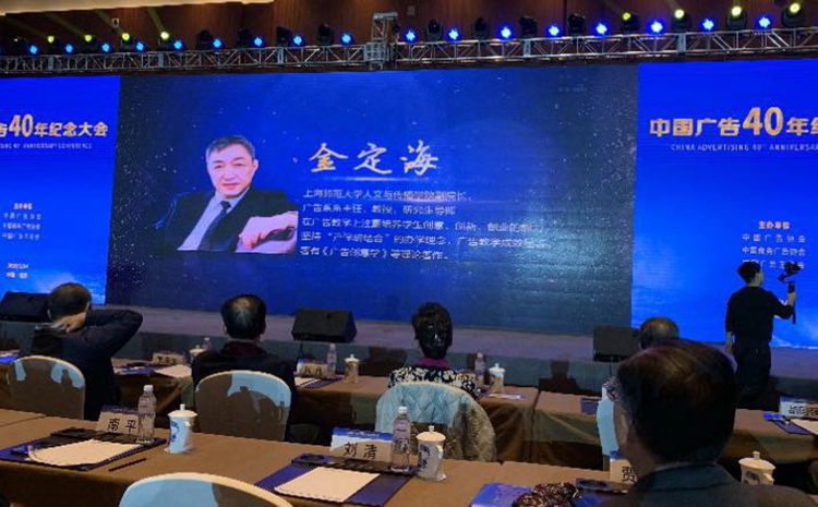 1月14日,由中國廣告協會、中國商務廣告協會、中國廣告主協會共同舉辦的中國廣告40年紀念大會在北京國家會議中心舉行。上海師范大學人文與傳播學院金定海教授因其對廣告學理論研究、廣告學教育以及廣告行業的突出貢獻,榮獲“中國廣告40年廣告學人代表”。本次大會中,全國共有五位學者獲得“中國廣告40年廣告學人代表(1979年-2018年)”殊榮。除我校金定海教授外,廣告前輩唐忠樸先生、廈門大學陳培愛教授、中國傳媒大學丁俊杰教授、北京大學陳剛教授也獲此榮譽。