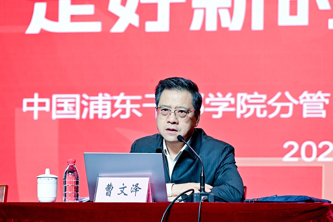 4月28日,學校舉行深入貫徹中央八項規定精神學習教育讀書班專題輔導報告暨黨委理論學習中心組(擴大)學習會,邀請中國浦東干部學院分管日常工作副院長曹文澤教授作“深入貫徹中央八項規定精神,走好新時代趕考路”宣講報告。校黨委書記林在勇主持學習會并講話。校領導班子成員、黨委理論學習中心組成員、全體副處級以上干部參加學習。