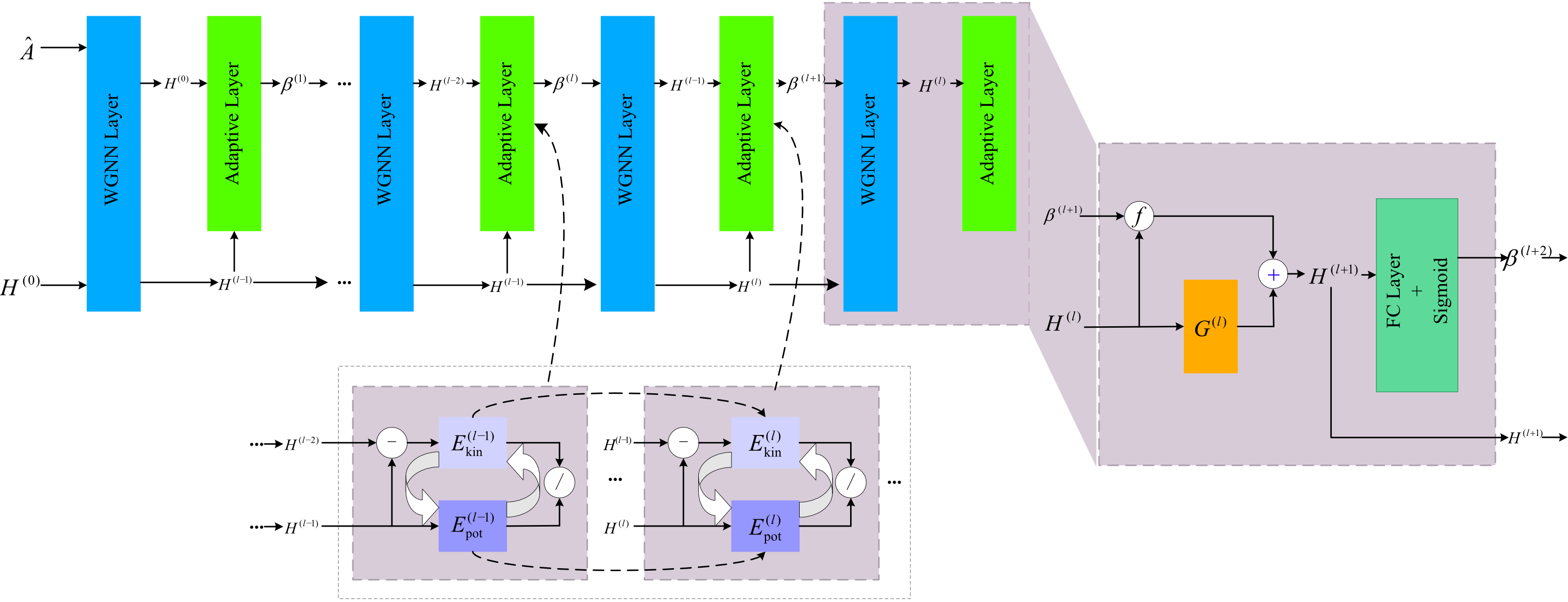 研究提出了一種波動驅(qū)動的圖神經(jīng)網(wǎng)絡(luò)框架,通過波動方程重新定義特征傳播。與擴散不同,波動方程結(jié)合了二階動力學(xué),平衡平滑和振蕩行為以保留高頻分量,同時確保有效的信息流動。為增強波動方程在圖結(jié)構(gòu)上離散化的穩(wěn)定性和收斂性,研究引入了受動能與勢能動力學(xué)啟發(fā)的能量機制,通過平衡時間演化和結(jié)構(gòu)對齊來穩(wěn)定傳播。實驗表明,此框架實現(xiàn)了最先進的性能,有效緩解了過平滑問題,并支持構(gòu)建更深層、更具表達力的架構(gòu)。