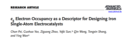 近日,化學(xué)與材料科學(xué)學(xué)院萬(wàn)穎教授團(tuán)隊(duì)在Advanced Materials上發(fā)表題為“eg Electron Occupancy as a Descriptor for Designing Iron Single-Atom Electrocatalysts”的研究論文,首次提出以鐵單原子的eg軌道電子占據(jù)數(shù)為關(guān)鍵描述符,指導(dǎo)高效氧還原反應(yīng)(ORR)電催化劑的設(shè)計(jì)。此項(xiàng)研究突破了傳統(tǒng)“試錯(cuò)法”設(shè)計(jì)瓶頸,建立了電子占據(jù)數(shù)-載體配位-催化性能的定量關(guān)聯(lián)模型,為單原子催化劑的理性設(shè)計(jì)提供普適性框架。上海師范大學(xué)為第一署名單位,裴春、姚國(guó)華副教授、趙紫光為論文共同第一作者,上海師范大學(xué)萬(wàn)穎教授、華東理工大學(xué)孫雅飛為論文共同通訊作者。