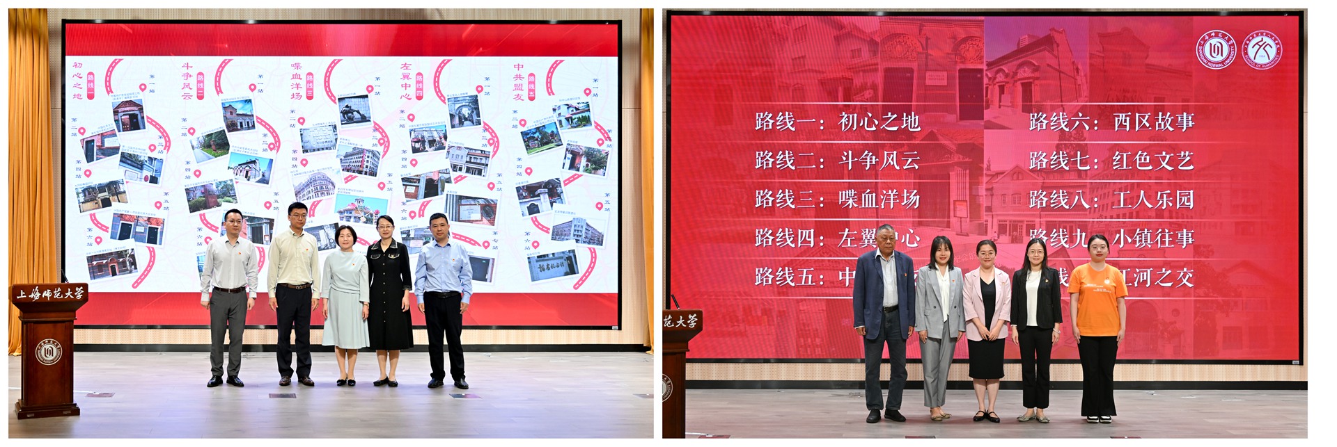 在上海紅色行走10條經典線路的發布環節,校黨委組織部、宣傳部、研工部、離退休工作部、團委以及人文學院師生代表們共同在大屏幕上點亮了“初心之地”“斗爭風云”“喋血洋場”“左翼中心”“中共盟友”“西區故事”“紅色文藝”“工人樂園”“小鎮往事”“江河之交”這十條紅色路線,并面向全校師生發布。接下來,學校將著力把這10條紅色經典路線建設成為理論宣傳的創新平臺和鑄魂育人的實踐課堂。