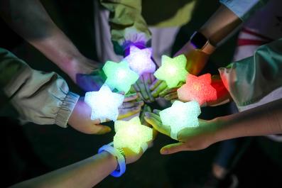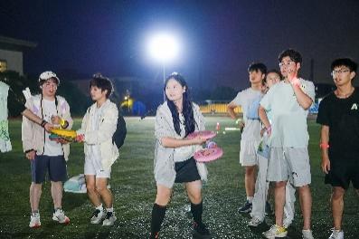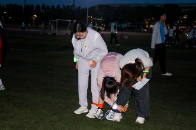 本次熒光夜跑活動精心設計,將體育與校園文化深度融合。沿途設置的趣味打卡項目更是別出心裁,趣味接力賽、蒙眼四人五足、飛盤挑戰賽、合作疊衣大挑戰、園區知識問答接龍、齊心協力拼一拼等項目,不僅考驗著同學們的身體素質和團隊協作能力,也讓大家在運動中享受快樂,充分展現了體育的魅力和趣味性。