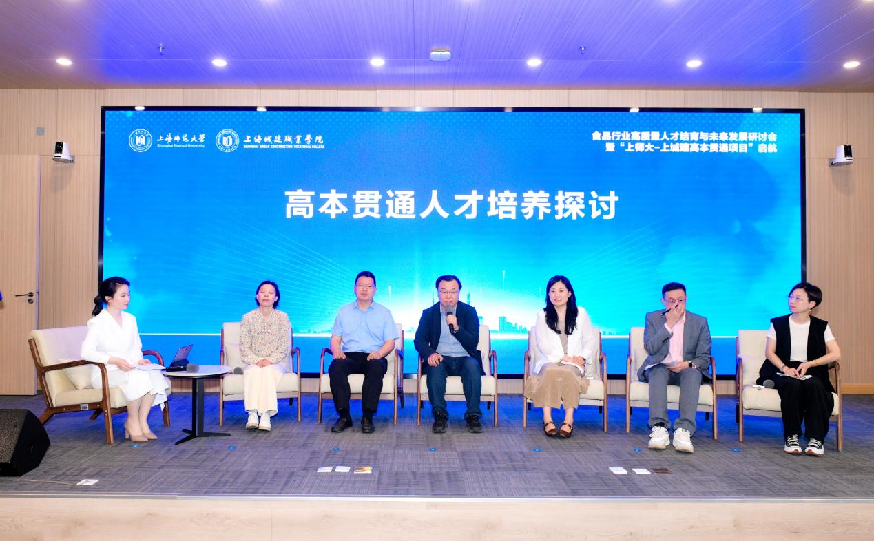 食品行業教育專家、企業代表、職業教育專家等圍繞食品行業高質量人才培育與未來發展主題,共同探討“校-行-企-研”四方深度聯動背景下,“上師大-上城建高本貫通項目”人才培養模式。