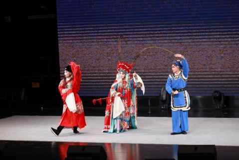 壓軸大戲《昭君出塞》由國家一級演員馮蘊傾情演繹。作為武旦兼刀馬旦行當的佼佼者,馮蘊老師憑借精湛的技藝,在舞臺上演繹了王昭君出塞途中的悲壯與堅毅。她手持馬鞭,在舞臺上輾轉騰挪,如行云流水般的動作令人目不暇接,翻躍、旋轉一氣呵成,不僅展示了京劇武戲的精湛技藝把一代巾幗的豪情與柔情完美詮釋,也將整場演出推向高潮。