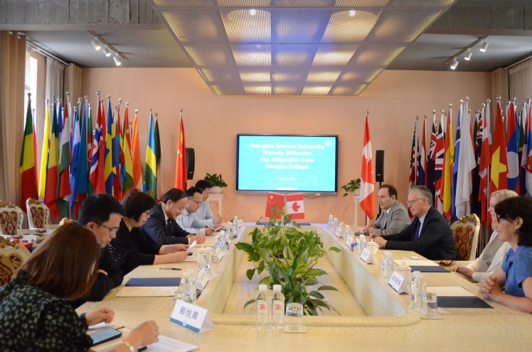 6月3日上午,加拿大道格拉斯學院校長凱西?丹頓(Kathy Denton)率學術副校長兼教務長索爾?博格福德(Thor Borgford)、國際教育副教務長萊昂內爾?羅爾丹-弗洛雷斯(Leonel Roldan-Flores)等代表團一行訪問我校。校長袁雯、副校長蔣明軍親切會見來賓,國際交流處處長肖勝雄、體育學院院長薛原、副院長武海潭等相關負責人參與會談。