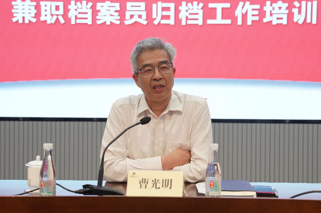 為迎接第18個國際檔案日,進一步提升各單位兼職檔案員的專業素養,開創“存史精準、資政有方、育人出彩”的檔案工作新格局,6月5日下午,檔案館(博物館、校史館)召開2025年度檔案工作會議暨兼職檔案員歸檔工作培訓會。校黨委常委、總會計師曹光明出席,來自全校各部(處)、學院和直屬單位的百余名兼職檔案員共同參加,會議由檔案館(博物館、校史館)館長徐曉明主持。