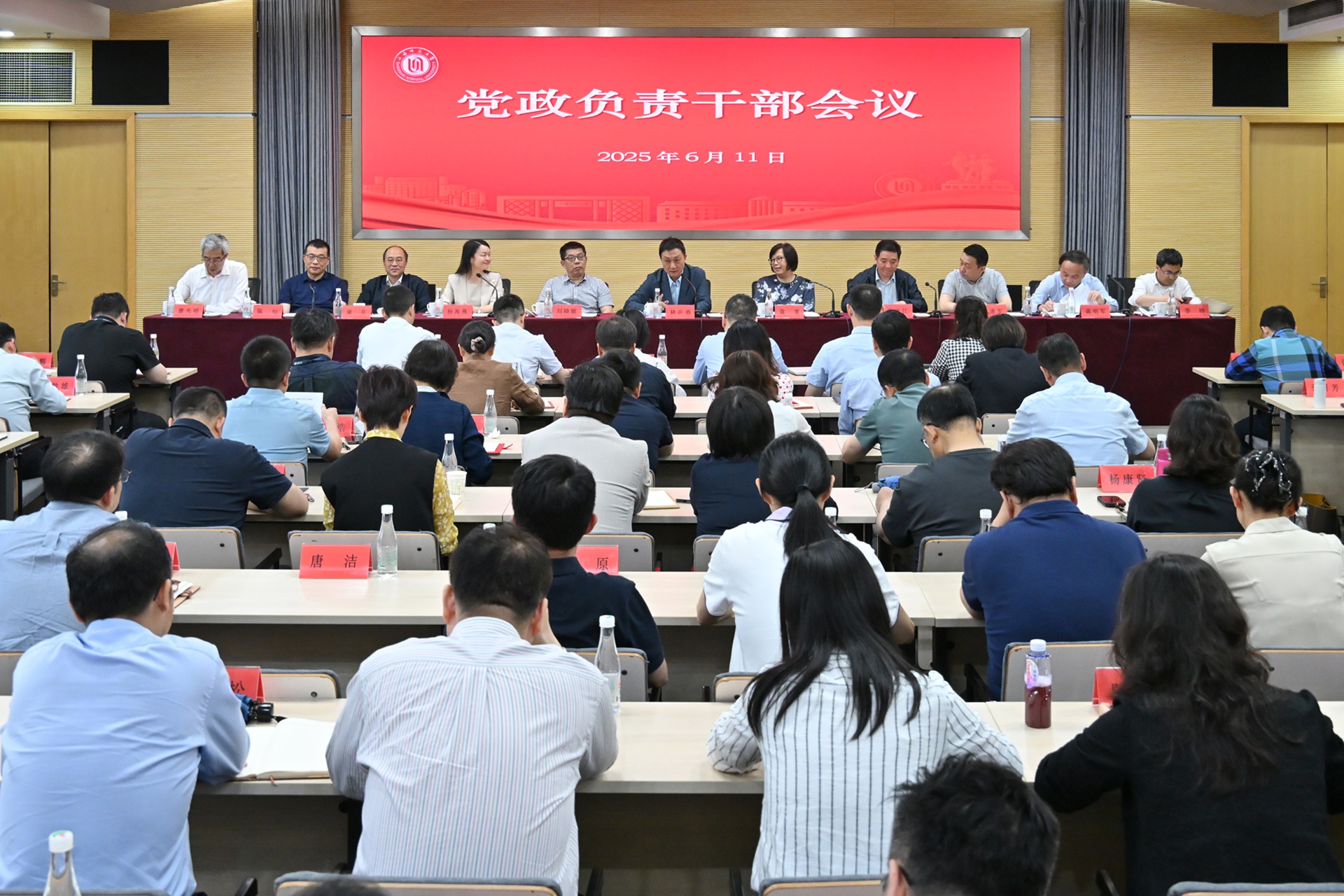6月11日下午,學校召開黨政負責干部會議。會議總結了上一階段工作成效,分析研判了近階段面臨的形勢,部署下一階段重點工作。全體校領導、二級單位黨政負責人、職能部處負責人出席會議。會議由校黨委書記林在勇主持。