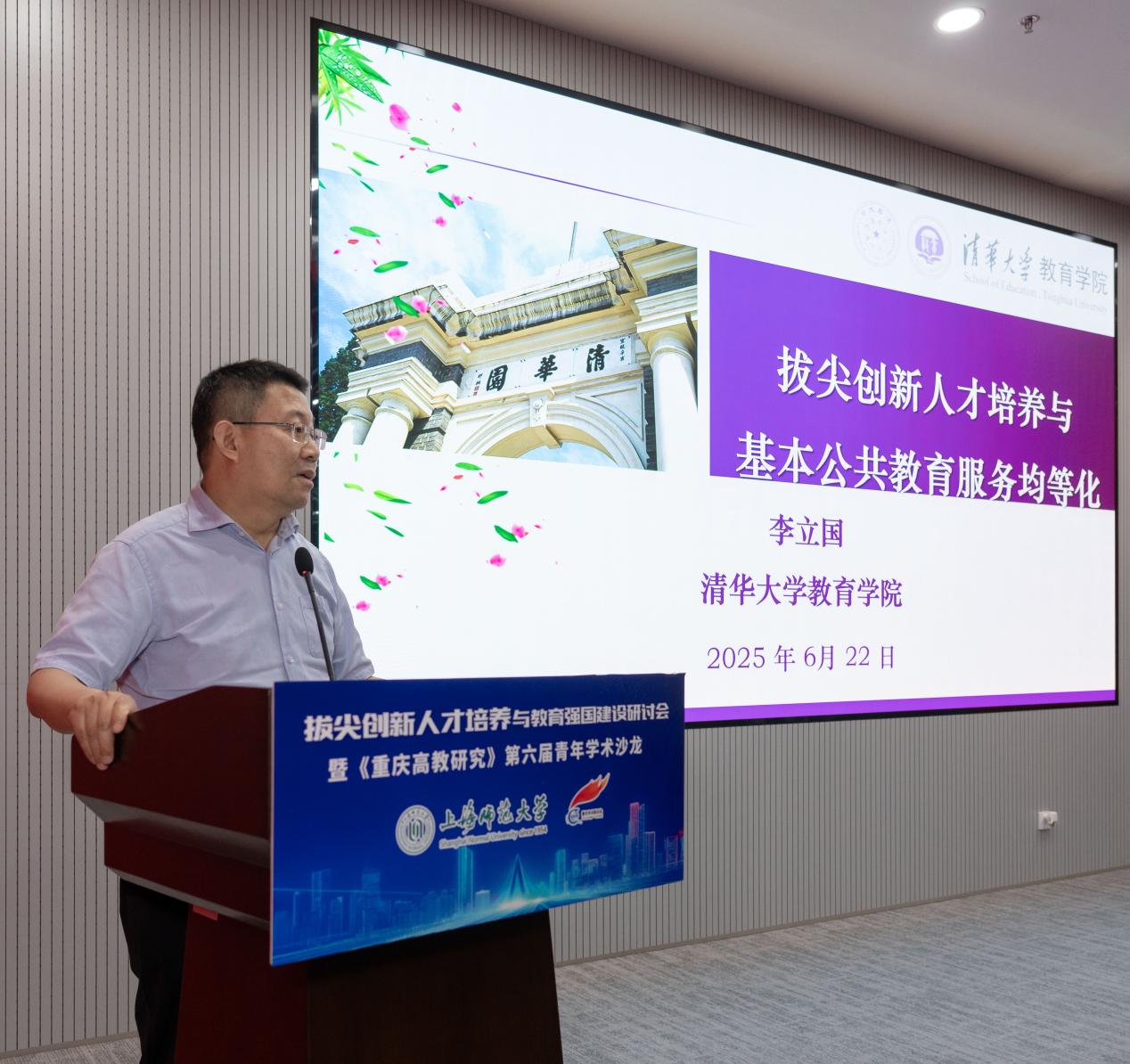 清華大學教育戰略決策與國家規劃研究中心主任李立國進行了“如何認識拔尖創新人才培養與基本公共教育服務均等化的關系”的主旨報告。他認為,當前基礎教育功利化、應試教育盛行、雙減政策難落地等問題,根源在于高等教育優質資源稀缺,如雙高校招生占比僅7%,人口大省甚至低至2.24%,致使基礎教育為高考分數激烈競爭,難以形成寬松教育生態。他通過對比中美高等教育結構,發現美國研究型大學、一般本科與社區學院占比平衡,而中國雙高校占比不足5%,人才培養結構呈金字塔型,亟待向橄欖型轉變。他建議,大力發展優質高等教育,擴大一流學科與優質本科招生規模,建設新型研究大學并推進中外合作辦學,同時推進基礎教育均等化,夯實人才培養底座,以優化教育生態,為拔尖創新人才培養提供良好環境。