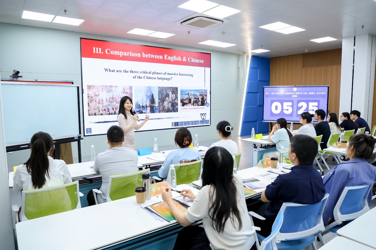 本屆大賽由上海外國語大學主辦、上海外語教育出版社承辦,以 “傳播中國,領航未來” 為主題,旨在推動新時代大學英語教學高質量發展。比賽分為“綜合課組”和“視聽說課組”,分設特等獎一名,一等獎三名和二等獎6名。來自本市多所高校的優秀選手匯聚比賽現場,經過激烈的角逐,我校外國語學院林辰老師憑借扎實的教學功底、創新的教學設計以及富有感染力的課堂呈現,巧妙地將思政元素融入綜合課教學,引導學生在語言學習中樹立正確的價值觀,展現了獨特的教學魅力,榮獲 “綜合課組” 一等獎;陳孚老師在 “視聽說課組” 比賽中,通過豐富的視聽資料和多樣化互動環節,激發學生的學習興趣,并且在各個環節中注重支架式教學,幫助學生建立敢于開口的自信,獲得評委們的一致認可,榮獲“視聽說組”二等獎。