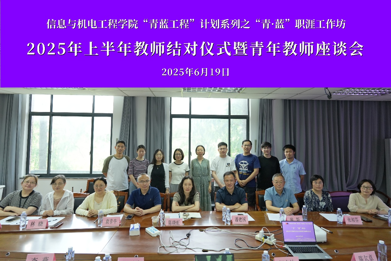 6月19日下午,信息與機(jī)電工程學(xué)院舉辦2025年上半年教師結(jié)對(duì)儀式暨青年教師座談會(huì)。學(xué)院黨委書記陳曉虹,副院長(zhǎng)(主持工作)潘建國(guó),副院長(zhǎng)袁非牛,學(xué)院師德師風(fēng)建設(shè)總督導(dǎo)黃新,青年教師代表、新進(jìn)教師及帶教導(dǎo)師等出席,信息與通信工程系主任上官倩芡主持會(huì)議。