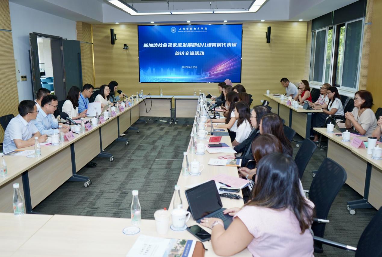 6月25日下午,新加坡社會及家庭發展部幼兒培育署代表團一行到訪我校。上海市教委托幼處副處長瞿佳杰、國際交流處處長肖勝雄、副處長喬易安,上海市教育科學研究院普通教育研究所學前教育研究室副主任潘瓊以及學前教育學院黨委書記楊成龍、副院長何慧華共同出席此次交流活動。
