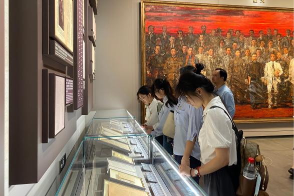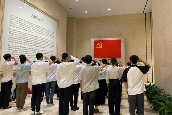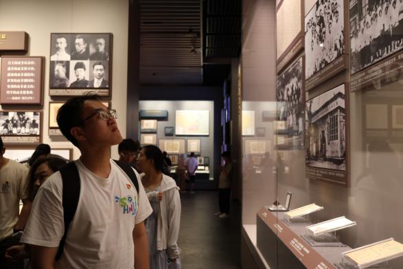 中共一大紀念館《偉大的開端》陳列展廳以“初心使命”貫穿全篇,共分為序廳、“前仆后繼、救亡圖存”“民眾覺醒、主義抉擇”“早期組織、星火初燃”“開天辟地、日出東方”“砥礪前行、光輝歷程”和尾廳7個板塊,綜合采用多種展示手段,全面系統地展示了中國共產黨的誕生歷程。學生黨員在一件件珍貴文物、一段段歷史影像前駐足凝望,通過文獻實物、歷史圖片和視頻資料等館內展陳,更深入地了解了建黨初期黨在上海的革命實踐、黨的創建歷程和波瀾壯闊的現代化進程,深刻體悟中國共產黨誕生的偉大歷史意義、感悟偉大建黨精神。研究生通信學碩黨支部書記顧浩表示:“從石庫門到天安門,從興業路到復興路,這次學習讓我更加明晰了青年黨員的責任——唯有將個人理想融入黨和國家事業,方能不負先輩囑托。”