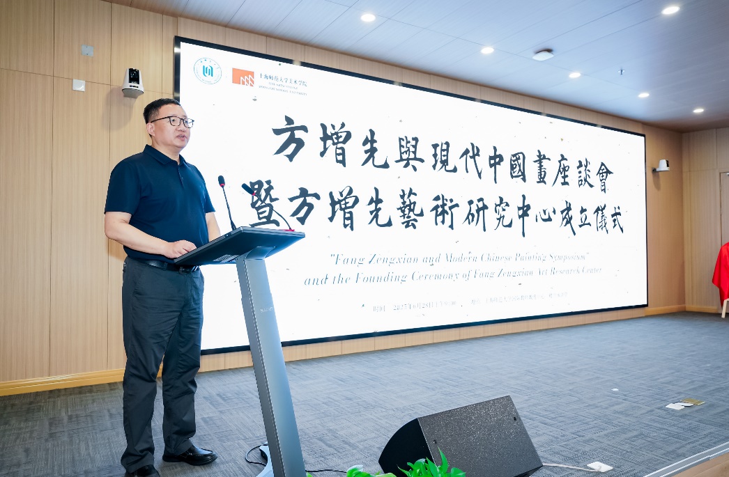 曹光明在致辭中向各位嘉賓的到來表示熱烈的歡迎,向為本次活動付出辛勤努力的各位同仁表示衷心的感謝。曹老師表示,方增先先生是二十世紀后半葉現實主義中國人物畫的杰出代表,他的藝術創作始終秉承對傳統藝術的尊重與傳承,同時又敢于突破和創新,兼具深厚的文化內涵和鮮明的時代特征,為中國畫的發展開辟了新的道路。上海師范大學方增先藝術研究中心的成立將推動中國畫的學術研究與藝術創作,為中國文化的傳承與發展貢獻更多的智慧與力量。