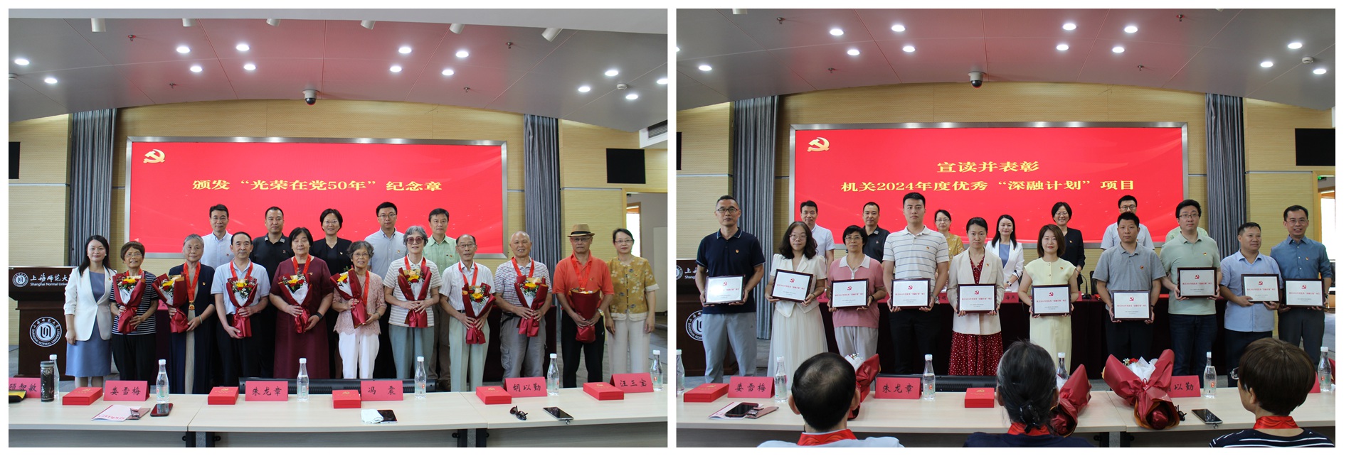 會(huì)上,陳璽球副書(shū)記宣讀機(jī)關(guān)獲得“光榮在黨50年”黨員名單,校黨委副書(shū)記楊海燕、離退休工作部部長(zhǎng)唐娟芳共同為機(jī)關(guān)“光榮在黨50年”的老黨員們頒發(fā)紀(jì)念章,機(jī)關(guān)青年黨員為老黨員們送上祝福的鮮花。