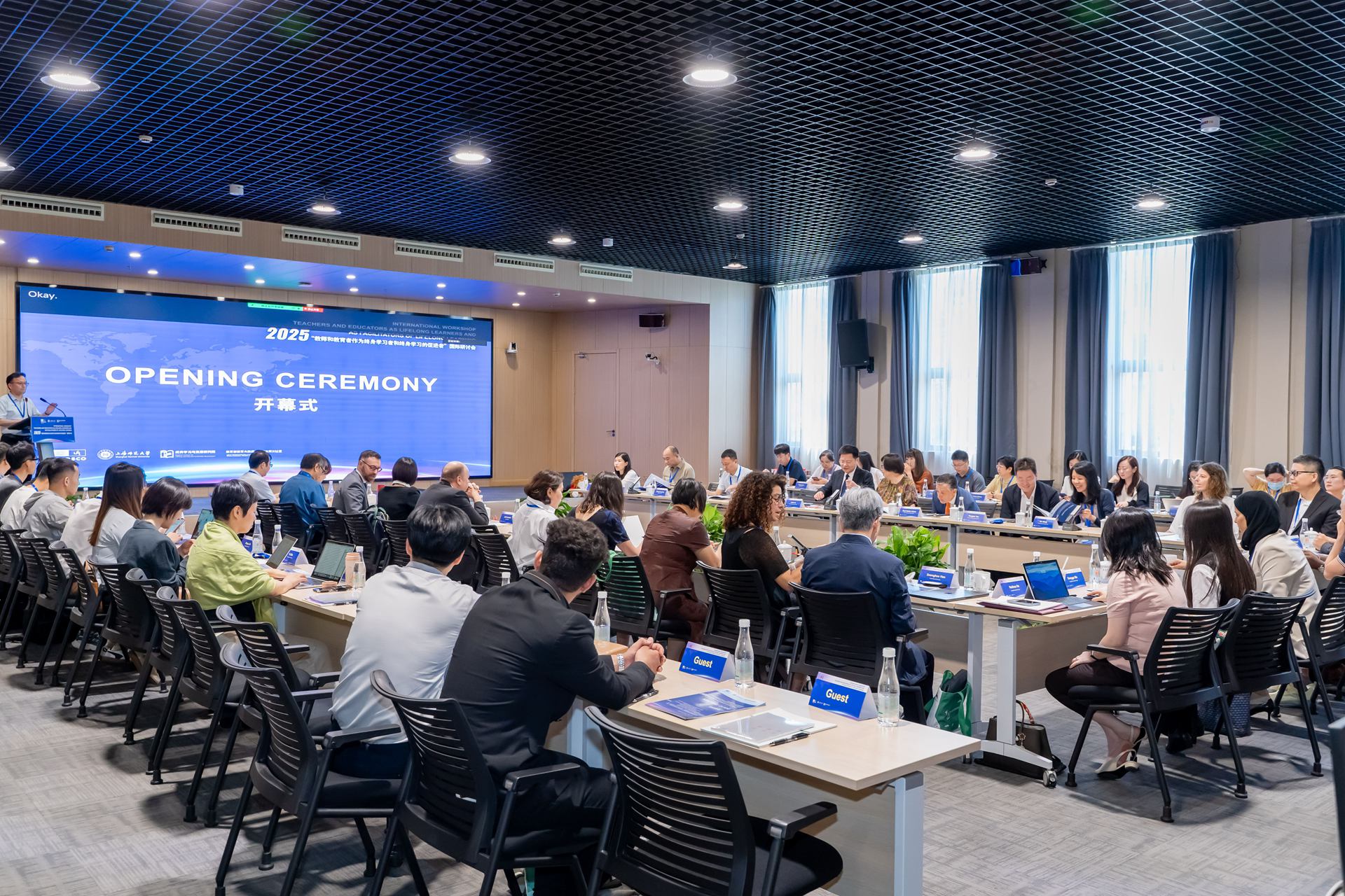 聯(lián)合國教科文組織終身學(xué)習(xí)研究所首席項(xiàng)目協(xié)調(diào)官Raul Valdes Cotera先生,UIL優(yōu)質(zhì)學(xué)習(xí)生態(tài)系統(tǒng)團(tuán)隊(duì)負(fù)責(zé)人Rakhat Zholdoshalieva女士,國際成人教育理事會(huì)主席Jose Roberto Guevara先生,歐洲成人教育研究學(xué)會(huì)主席Marcella Milana女士,上海市教委副主任葉霖霖,上海市教委終身教育處處長閆鵬濤,聯(lián)合國教科文組織教師教育中心主任張民選教授,上海師范大學(xué)校長袁雯教授,我校教育學(xué)院黨委副書記(主持工作)、教育部教育大數(shù)據(jù)與教育決策實(shí)驗(yàn)室副主任吳躍東教授,教育學(xué)院教師發(fā)展中心常務(wù)副主任、終身學(xué)習(xí)與發(fā)展研究院常務(wù)副主任徐雄偉教授,以及上海終身教育研究院執(zhí)行院長、華東師范大學(xué)教授李家成教授,陜西師范大學(xué)劉驥教授,曲阜師范大學(xué)何愛霞教授,四川師范大學(xué)李盛聰教授,江西科技師范大學(xué)歐陽忠明教授等來自全球16個(gè)國家的近40位教育政策制定者、學(xué)者與實(shí)踐者齊聚上海,圍繞教師終身學(xué)習(xí)的全球?qū)嵺`、政策框架與未來路徑展開深度對話。我校國際交流處處長肖勝雄教授主持開幕式。