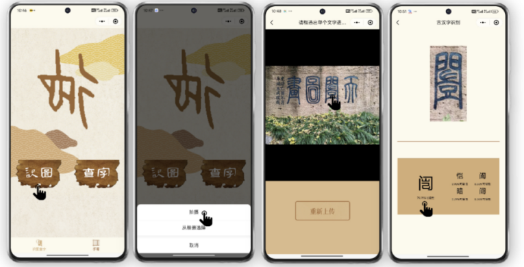 在論文提出的輕量化網(wǎng)絡(luò)模型基礎(chǔ)上,研究團(tuán)隊(duì)進(jìn)一步開發(fā)了智能云端古漢字識別小程序。該小程序融合場景文本檢測算法,能夠?qū)崿F(xiàn)對多樣化場景中各類古漢字的實(shí)時精準(zhǔn)識別,為用戶提供便捷高效的古文字識別服務(wù)。論文開源地址:https://github.com/1602353775/HUNet