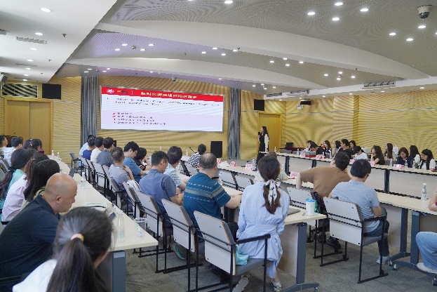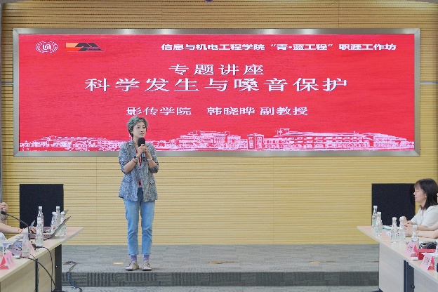 影視與傳媒學院韓曉曄副教授作專題培訓《科學發聲嗓音保護》,從理論分析到現場實操互動演示,詳細介紹了影響教師嗓音健康的相關因素、正確的用聲觀念及基本方法和綠色建嗓護嗓方案,為學院教師講解了課堂教學中如何在臺風正、聲音亮的同時保護授課教師的嗓音。多位教師參與提問和互動,現場反應輕松熱烈。